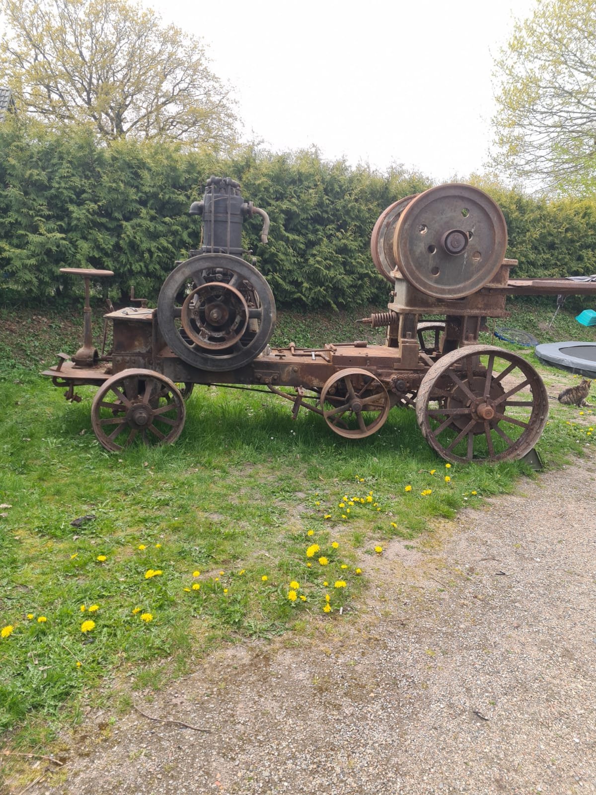 Moin, ja dass stimmt, wiegt als Komplettpaket 5 Tonnen. Hat 2 Vorwärts und ein Rückwärtsgang Kraftübertragung per Riemen mit Riemenwerfer und im Fahrbetrieb dann mit Kupplung wie man es kennt.