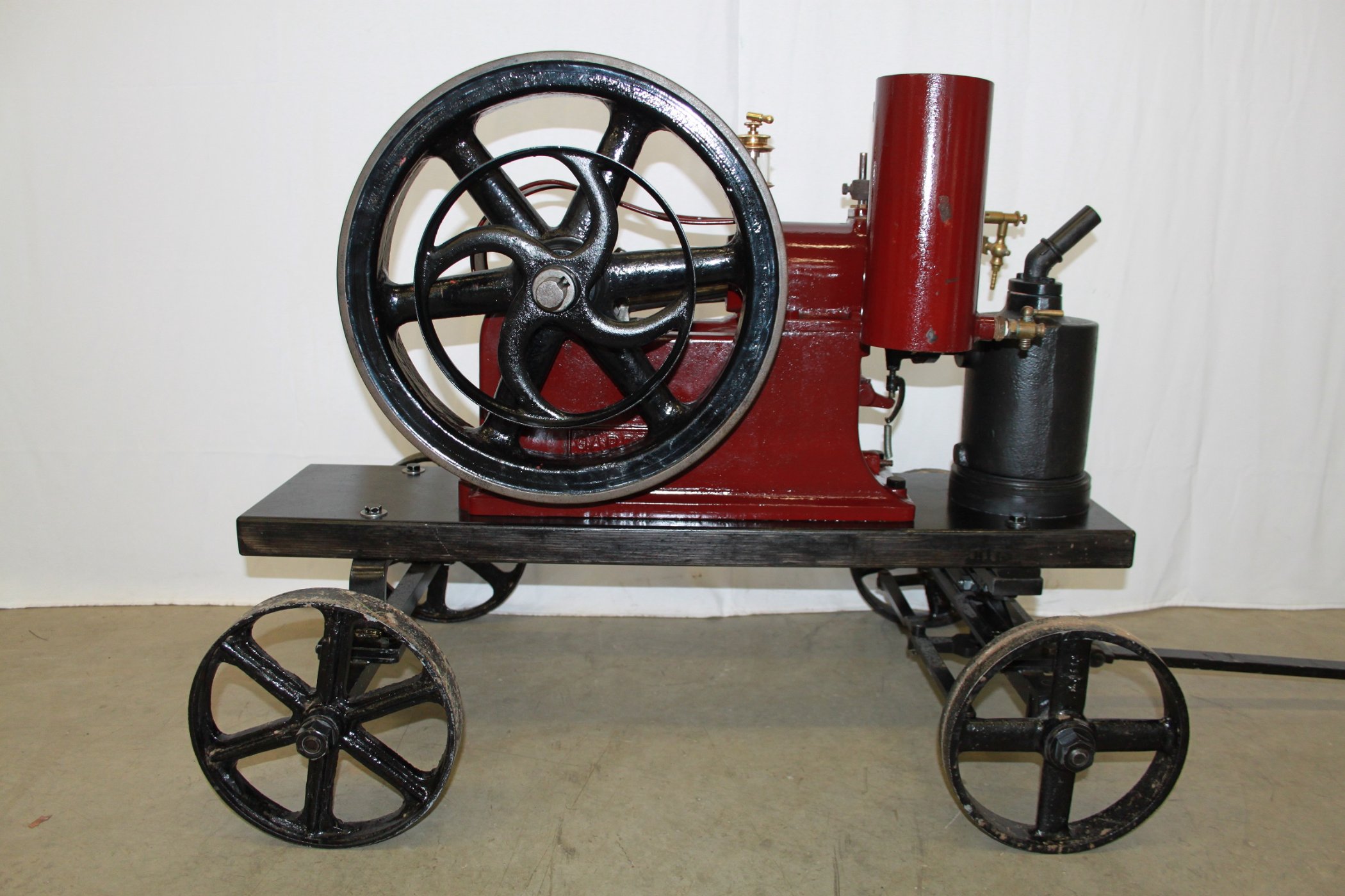Biete einen Gardner Gasmotor mit 0,75 PS und einem Schwungrad zum Verkauf an.