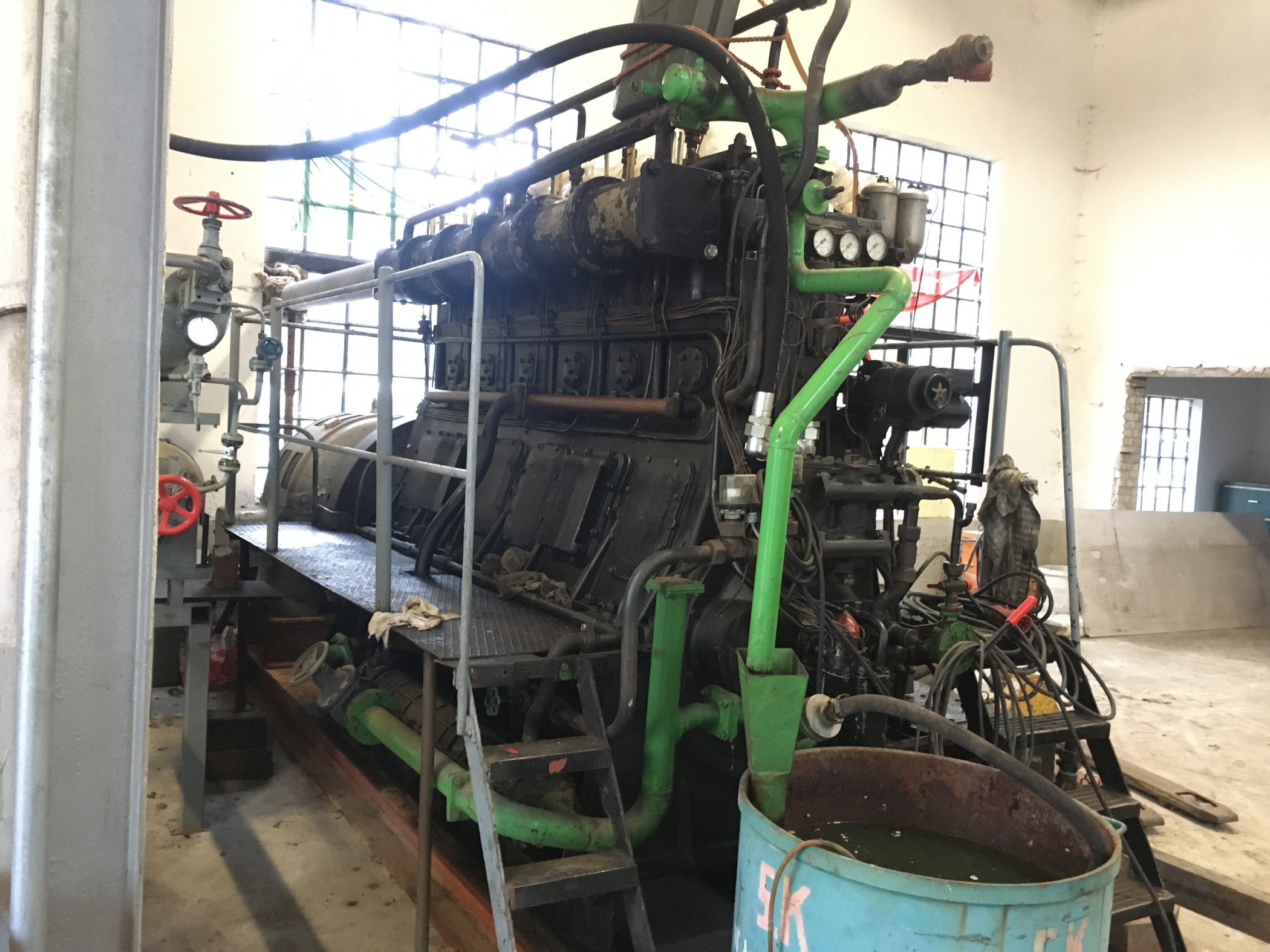 Vor der Demontage habe ich den Motor amjetzigen Standort noch einmal in Betrieb genommen. Mit nur 10 bar lief der Motor problemlos an. Der Motor wurrde ein halbes Jahr vor seiner Außerbetriebsetzung gundüberholt und befindet sich im technisch herforragenden Zustand.