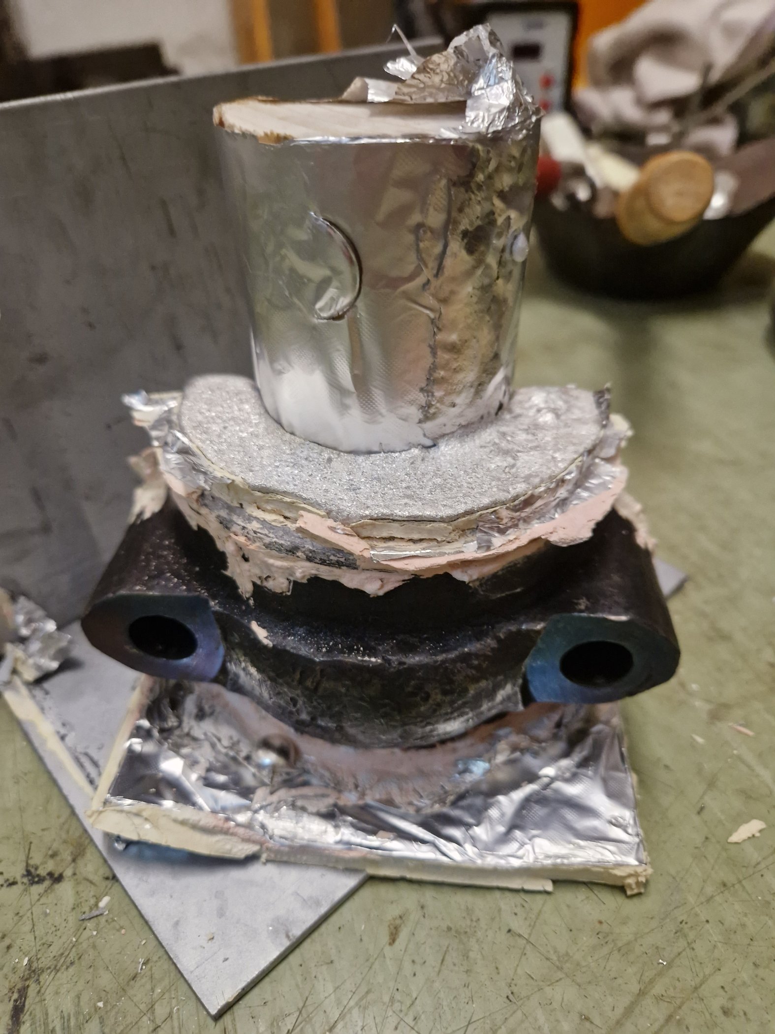 um beim ausspindeln die parallelität der achsen zwischen großem und kleinem pleulauge zu gewährleisten habe ich hauchzart referenzflächen plan gefräßt im 90°winkl zueinander die fürs spannen auf der fräse relevant werden um eben die parallelität der achsen bestmöglich sicherstellen zu können. das mess ich mir mit der mess uhr an den stellen wo ich drübergefräst habe dann schön aus bevor ich mit dem ausdrehwerkzeug reinfahr....so der plan