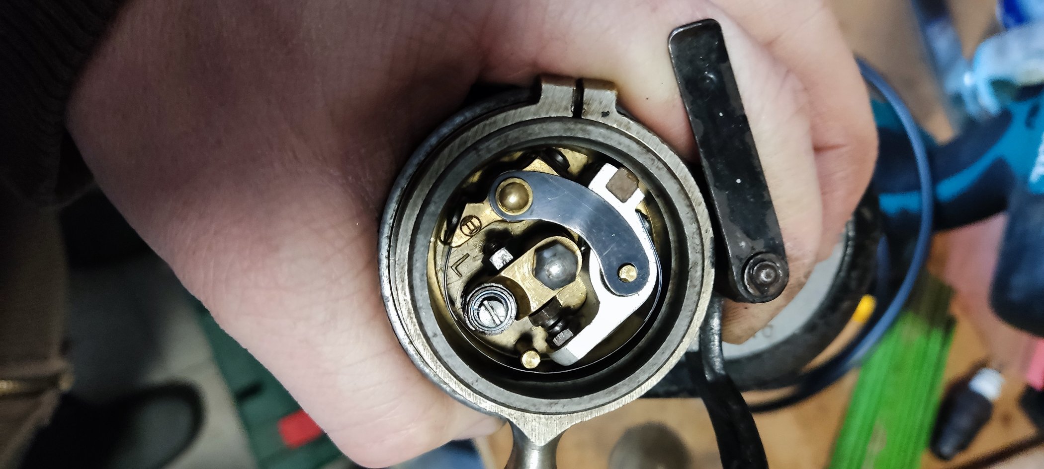Von hinten gesehen,Unterbrechergrundplatte dreht dann nach links. Der Unterbrecherhebel dreht dann normal immer in die Richtung wo die Kontakte offen sind die Lagerung des Hebels auf die andere Seite. Sieht so aus das bei dir die falsche Unterbrechergrundplatte verbaut ist,da gibt es L oder R Ausführung,zumindest bei Bosch!