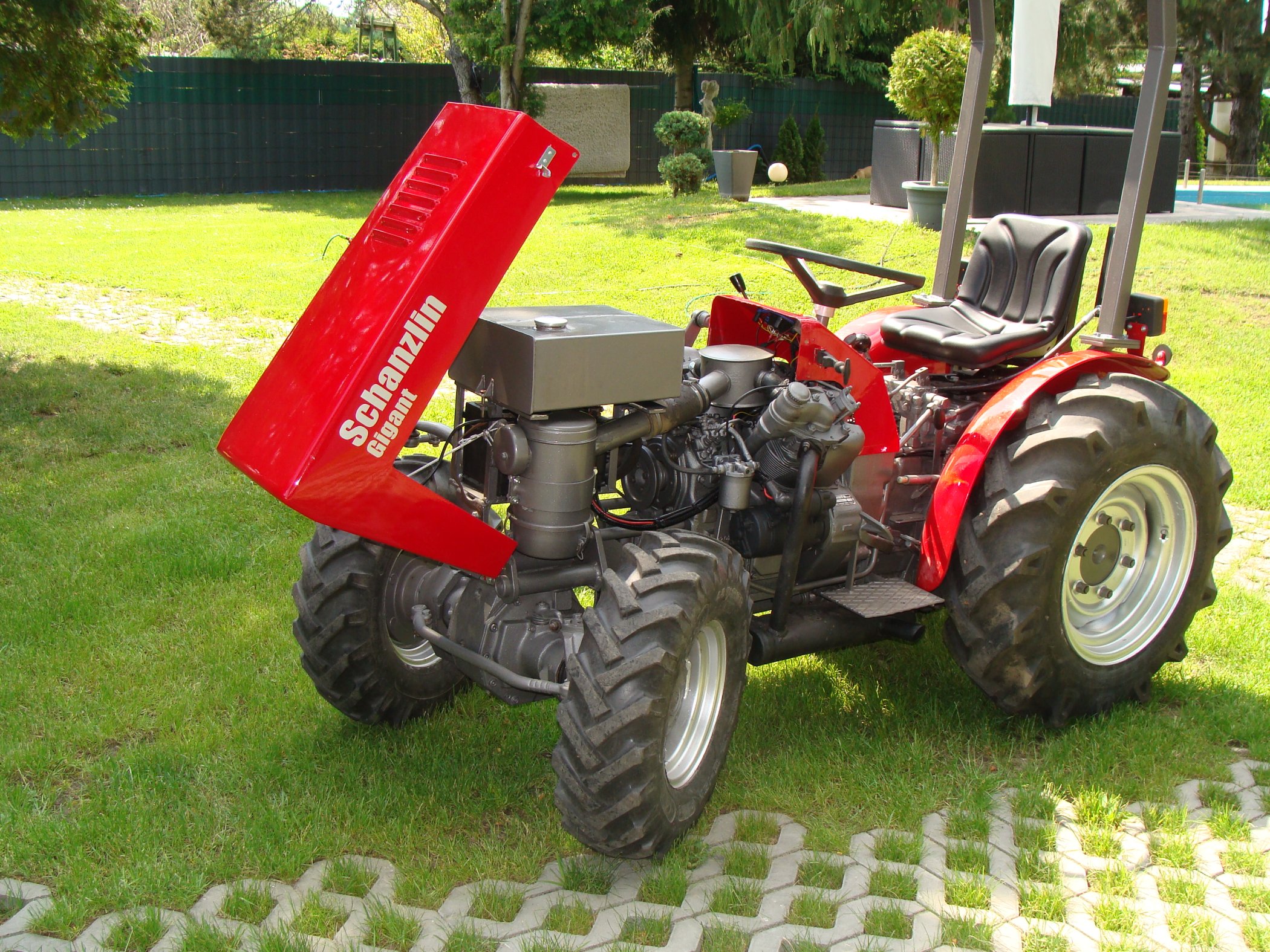 Falls es funktioniert ht mit dem hochladen, zeigt das erste Bild einen Schanzlin Gigant 300 mit Kabine in dem Zustand wie ich ihn gekauft habe, meine Meinung nach wirklich keine Schönheit.