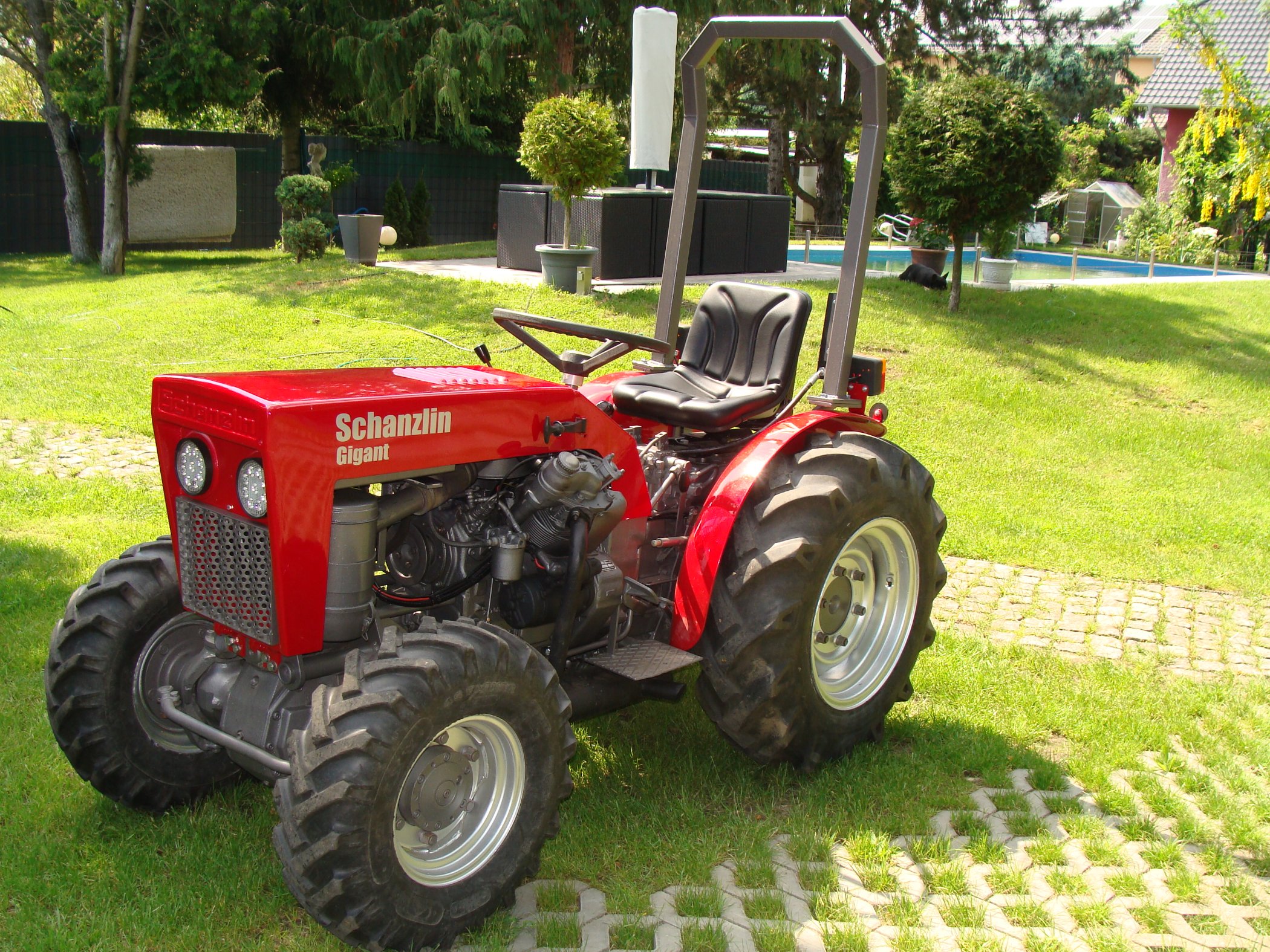 Falls es funktioniert ht mit dem hochladen, zeigt das erste Bild einen Schanzlin Gigant 300 mit Kabine in dem Zustand wie ich ihn gekauft habe, meine Meinung nach wirklich keine Schönheit.