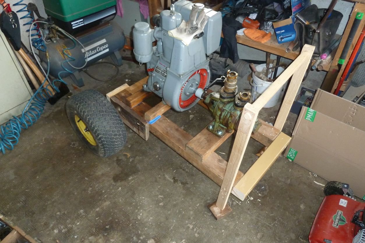 Ich habe -um den Motor in meiner "Rumpelkammer" auch mal ein bissel rangieren zu können- das originale Holzgestell in eine Art "Notlafette" verwandelt. Nicht schön, aber selten.