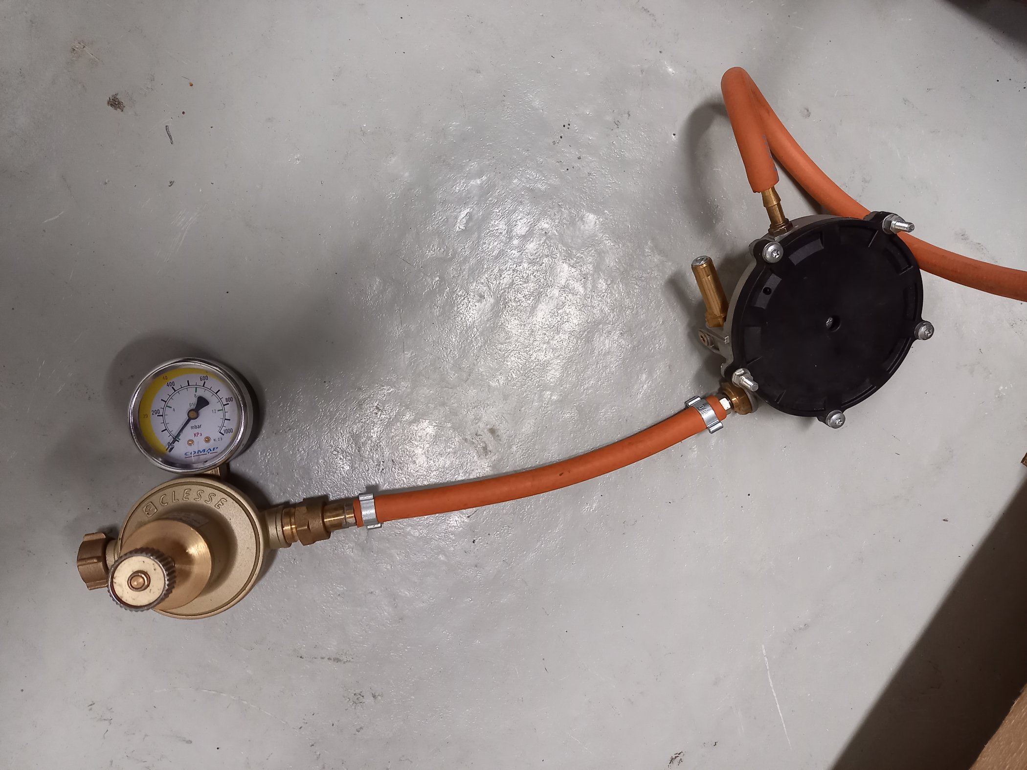 Nachtrag: Im Zentrum des Nulldruckreglers sitzt eine runder Knopf aus Plastik, damit ist es möglich vor dem Start etwas Gas in den Ansaugtrakt zu schicken .. wie ein "Tipper" an einem gewöhnlichen Benzin Vergaser.