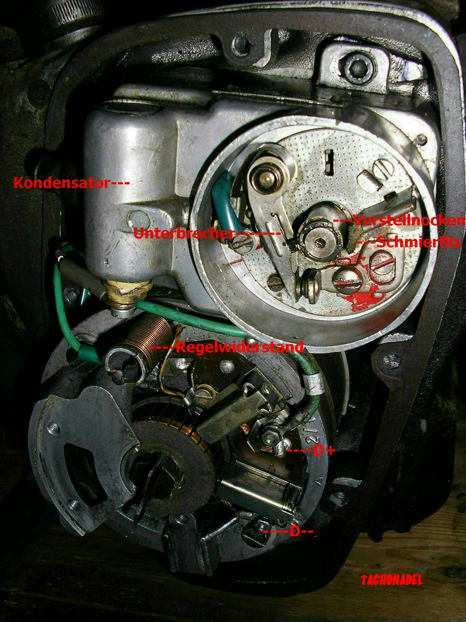 Das habe ich am Deckel des Unterbrechers gesehen. Mal sehen ob ich die Zündung des Motors wieder auf Magnetzündung