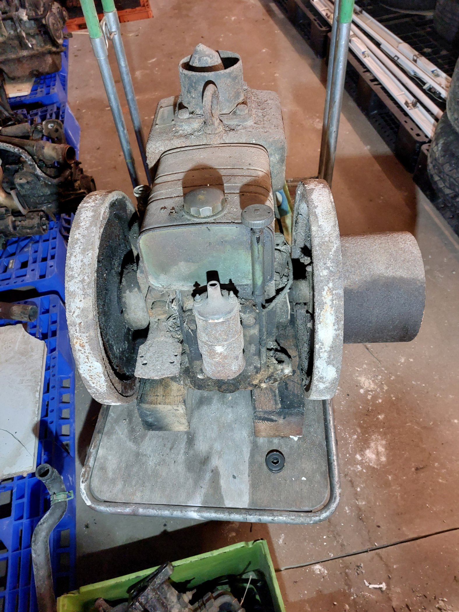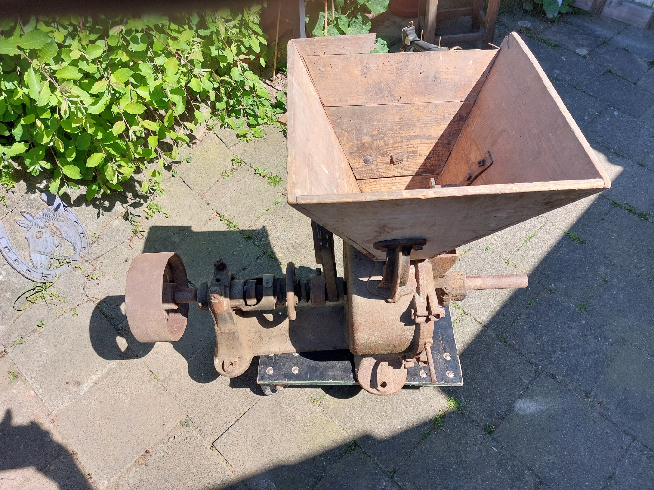 Mittlerweile hat sich schon der zweite Gußeisenbrocken angefunden. Damit unser Knubbel später mal was zu tun hat, gab es eine Ambi-Schrotmühle, die vermutlich aus den End-20er Jahren stammt. Sie hat die opt. Größe für den kl. Deutz.