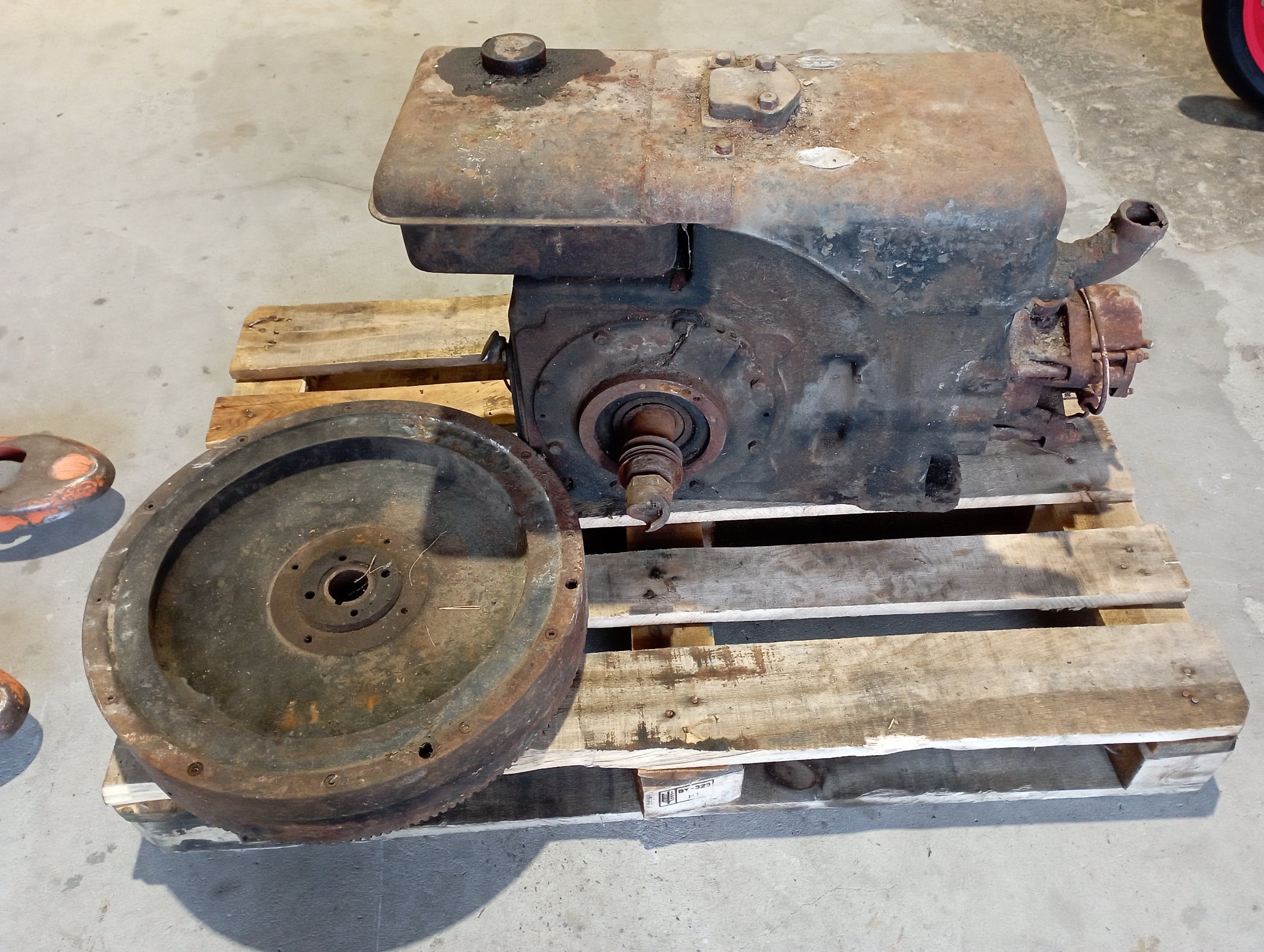 Der Motor hat Kondensatorkühlung, was ihn eigentlich als Restaurationsobjekt interessant erscheinen lässt. Das Schöpfrohr, welches sich wohl jetzt im Inneren des Schwungrads befindet, dürfte hingegen abgebrochen sein. Schade auch, daß der Luftfilter fehlt.