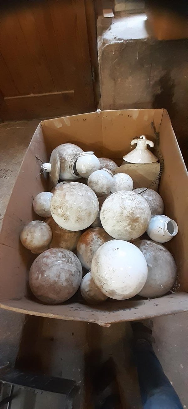 Biete ein Konvolut diverser Porzellan-Kugelleuchten, Fassungen 40 W, 60W und 100 W, alle E 27, an Kugeln hauptsächlich die großen 100er und die kleinen 40er, Fassungen in verschiedensten Ausführungen, gerade, gekrtöpft, Winkelbefestigung
