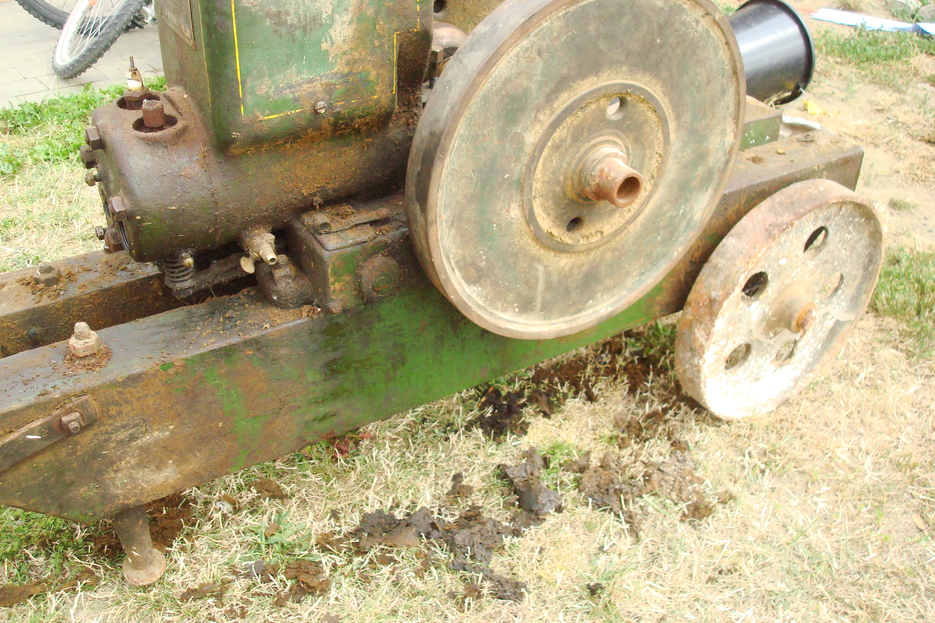 es ist ein Benziner , ich würde sagen Vorkrieg, der bis zur elektrifizierung des Ortes eine kleine Dreschmaschine angetrieben hat.