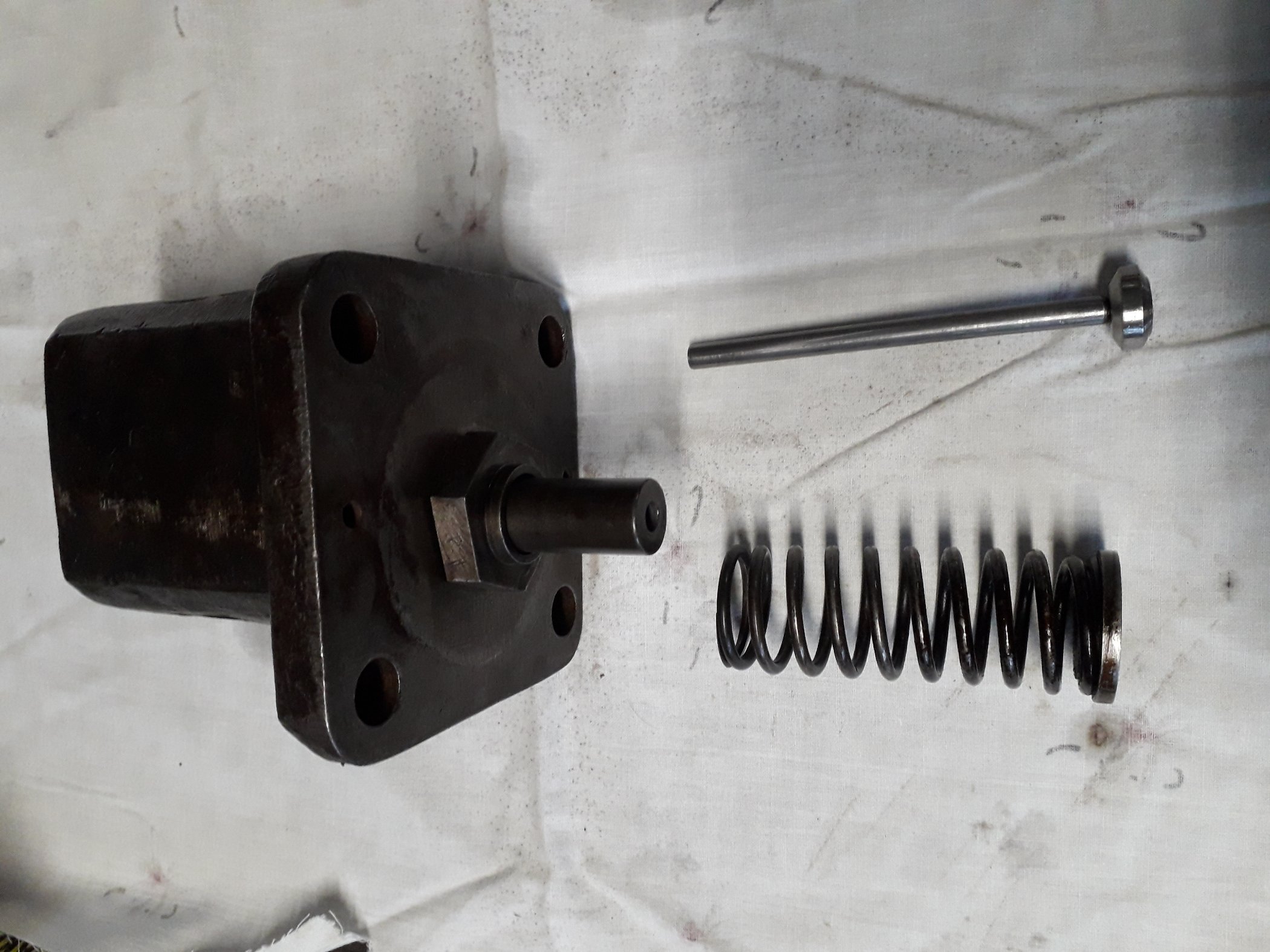 Es wäre auch noch die Möglichkeit, dass zwischen Einspritzpumpe und Gehäuse Einstellscheiben gehören, wo der Pumpenhub genau eingestellt wird.