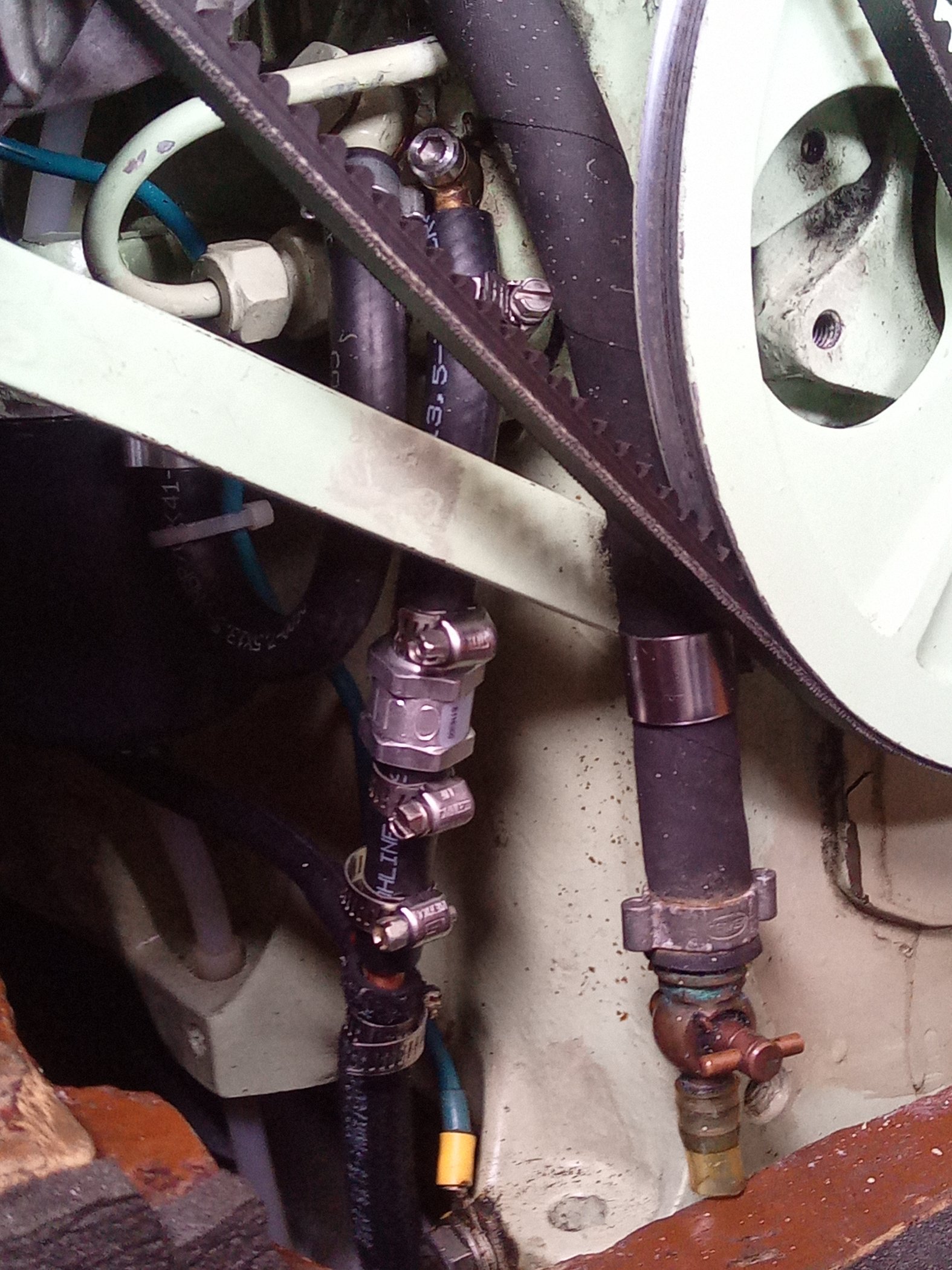 Ich habe heute die provisorische Zirkulationsleitung in mein Schiff eingebaut. Das funktioniert sehr gut. Die Durchlaufmenge entspricht ungefähr 1-2 Liter in der Minute. Also pieselt so ganz gemütlich in den Tank, ohne dabei Schaum zu produzieren. Das Rückschlagventil hat einen Gegendruck von 0,15 Bar. Das lässt sich alles ganz gut an. Der Motor sprang sofort an, und lief perfekt.