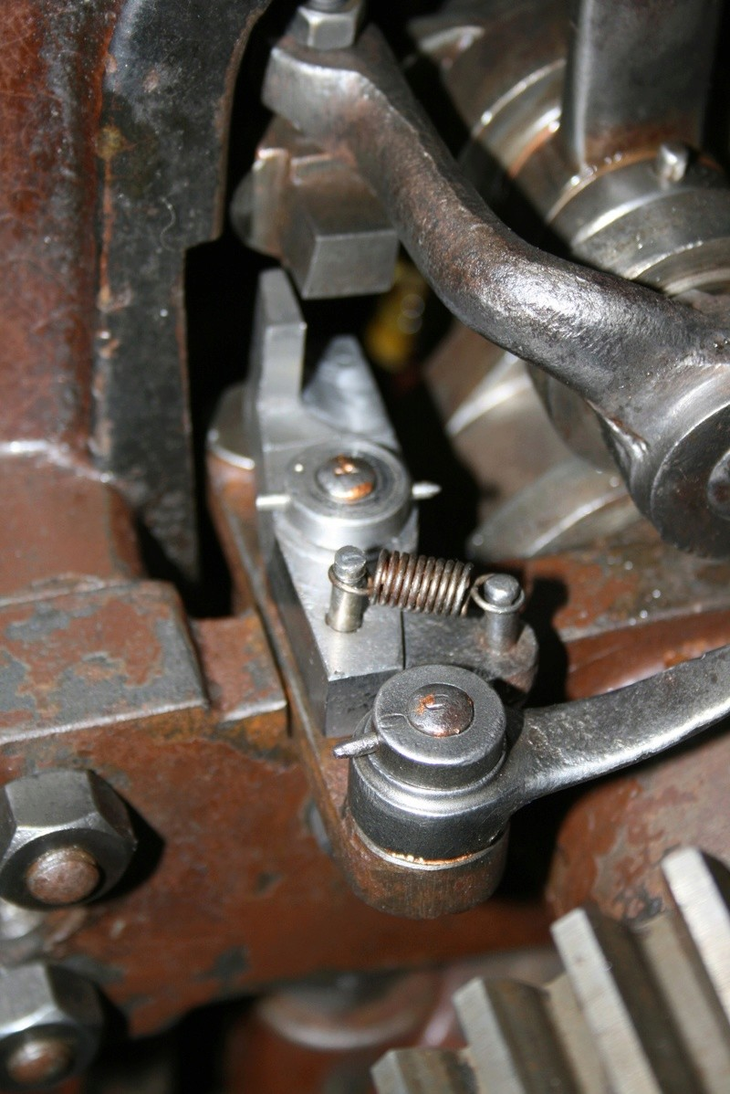 Die fertig eingebaute Klinke mit Feder. Die endgültige Einstellung erfolgt dann im Zusammenspiel mit dem Drehzahlregler.