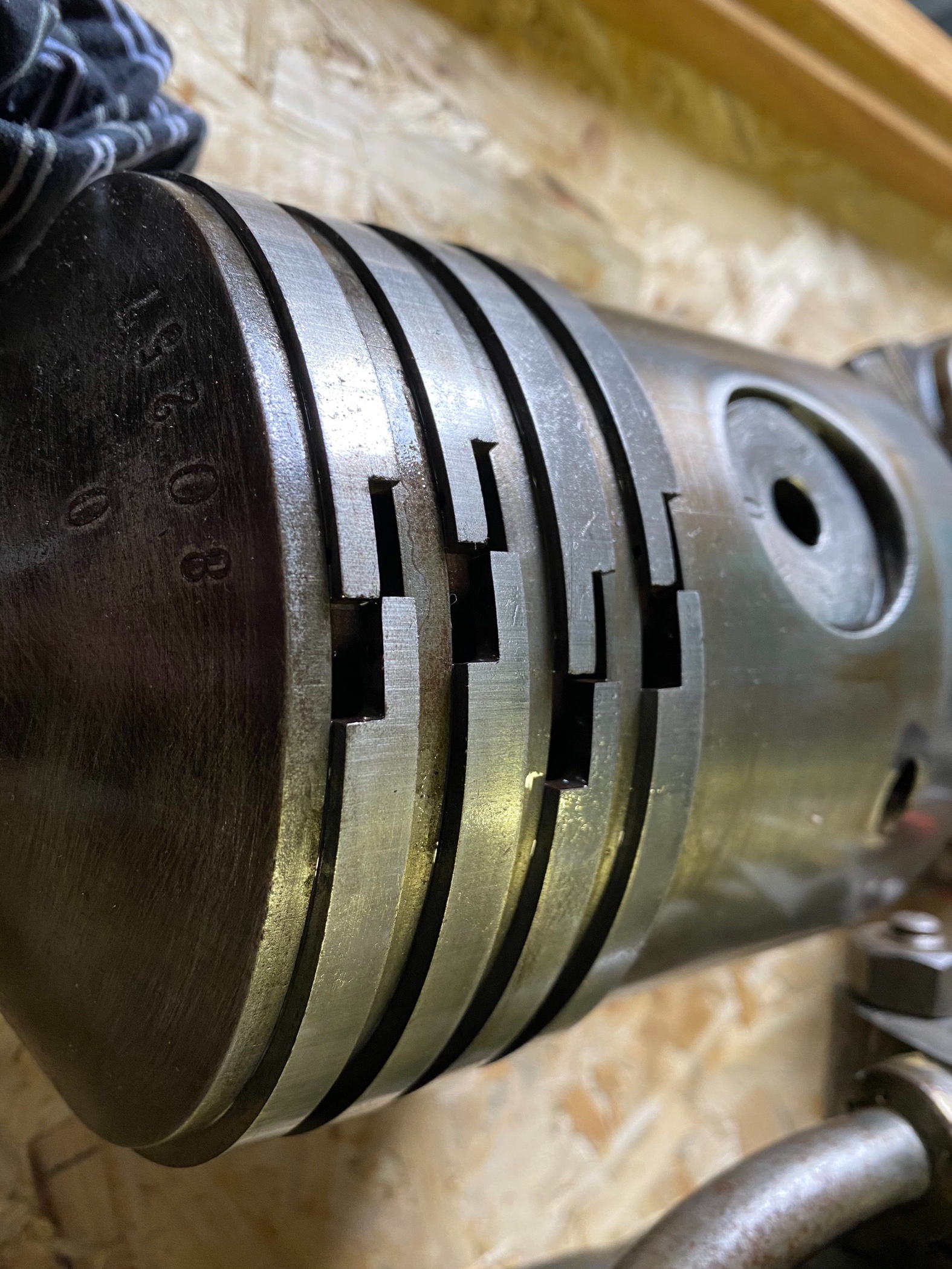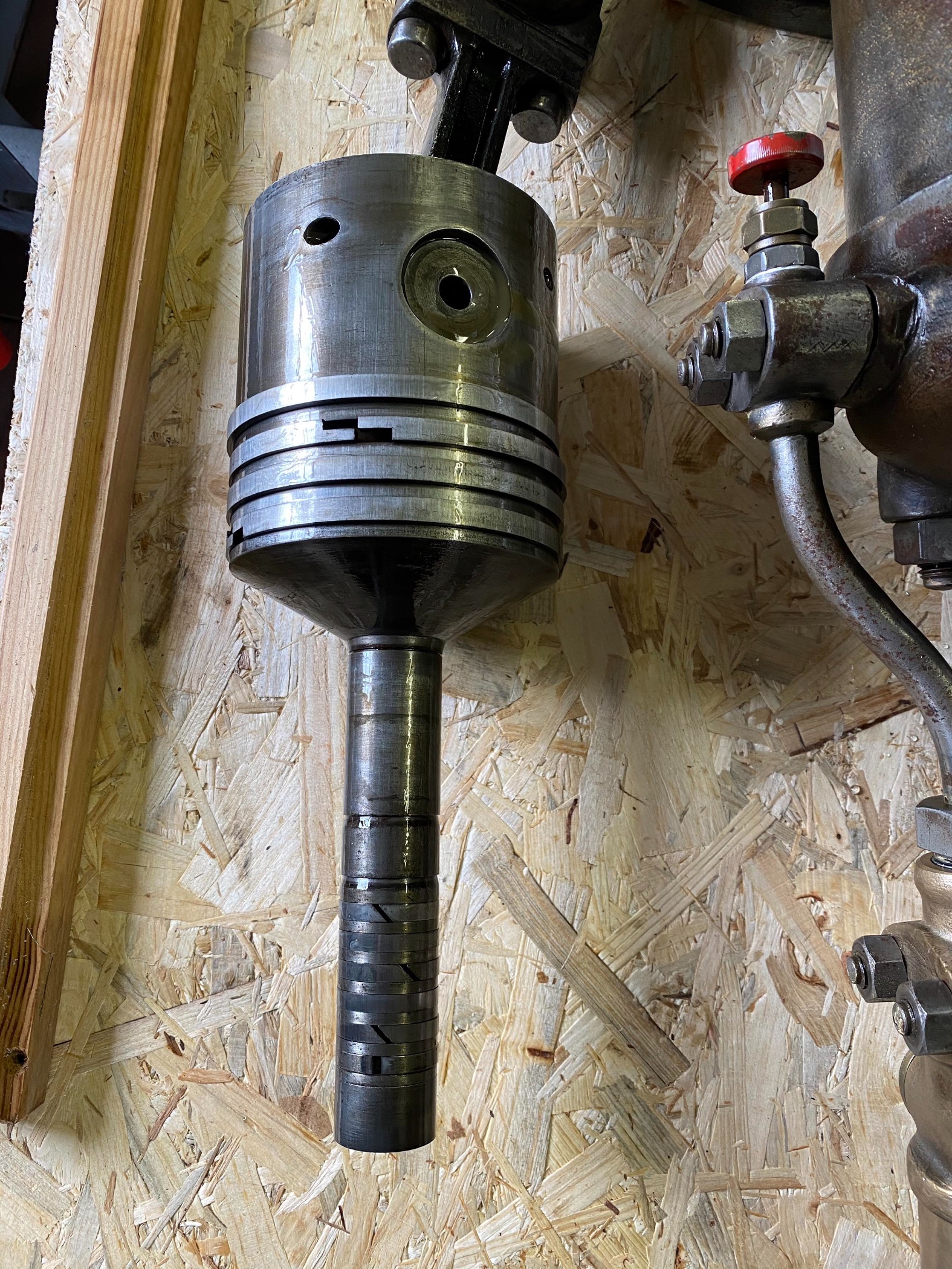 Was soll ich sagen, dass Kompressorproblem ist gelöst! Ohne Vorspannen beschleunigt das Schwungrad mit der Startluft auf >100 Umdrehungen pro Minute und füllt die 1.Kompressorstufe auf 15 Bar, während nach nicht einmal einer Minute am Manometer der zweiten Kompressorstufe 60-70 Bar anliegen. Der Druck im Anlassbehälter ist zu dieser Zeit immer noch bei ca. 10 Bar. Dank der vielen neuen Unterlagen konnten wir den Kompressor demontieren, reinigen und neu abdichten. Der Zustand der über 100 Jahre alten Teile ist wirklich beeindruckend. (Siehe Fotos)