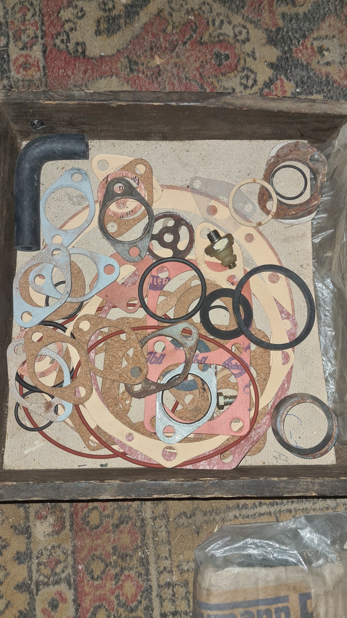 Moin, biete Ersatzteile für Farymann an, es ist eine Kisze, die wohl original ist, der Inhalt ist auf den Fotos zu sehen. Z.B.Ein Satz neue Kolbenringe, Einspritzdüsen Element , diverse Dichtung.