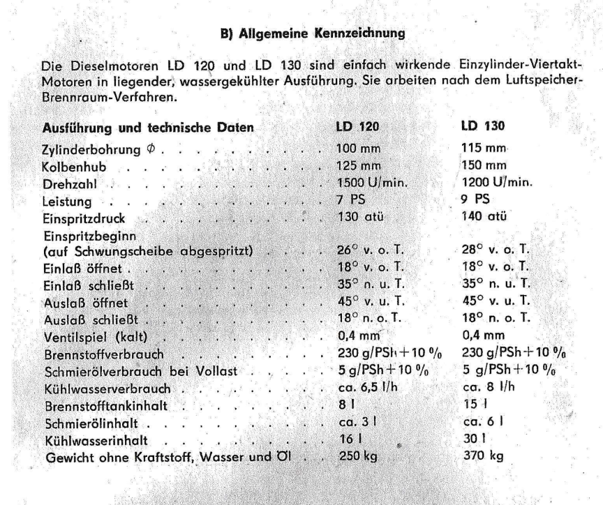 Ich habe 2 verschiedene Anleitungen für den 120 bzw. 130.In der einen steht der Einspritzdruck für den LD120 mit 110 atü und in der anderen mit 130 atü angegeben. Ich denke 20 atü ist aber schon ein ganz schöner Unterschied.