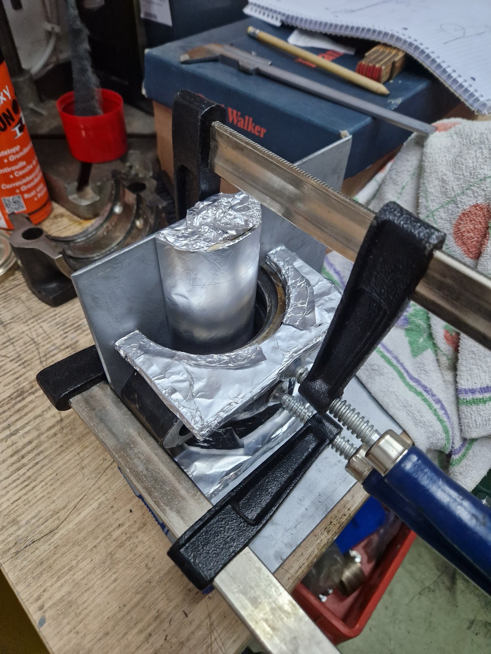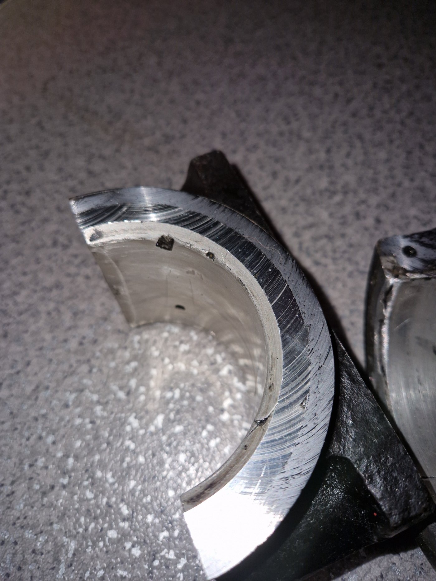 wie ich den motor bekommen habe war das lager schon mal erneuert worden...aber nicht gut, also wirklich nicht gut, die axiale führung, also den wm überstand links und rechts, hatte es es nicht. habe es mit anlaufscheiben probiert auszugleichen aber ehrlicherweise mehr schlecht als recht. aber ja , das pleuel wird am hubzapfen geführt und eben diesen wm überstand mache ich jetzt natürlich mit.