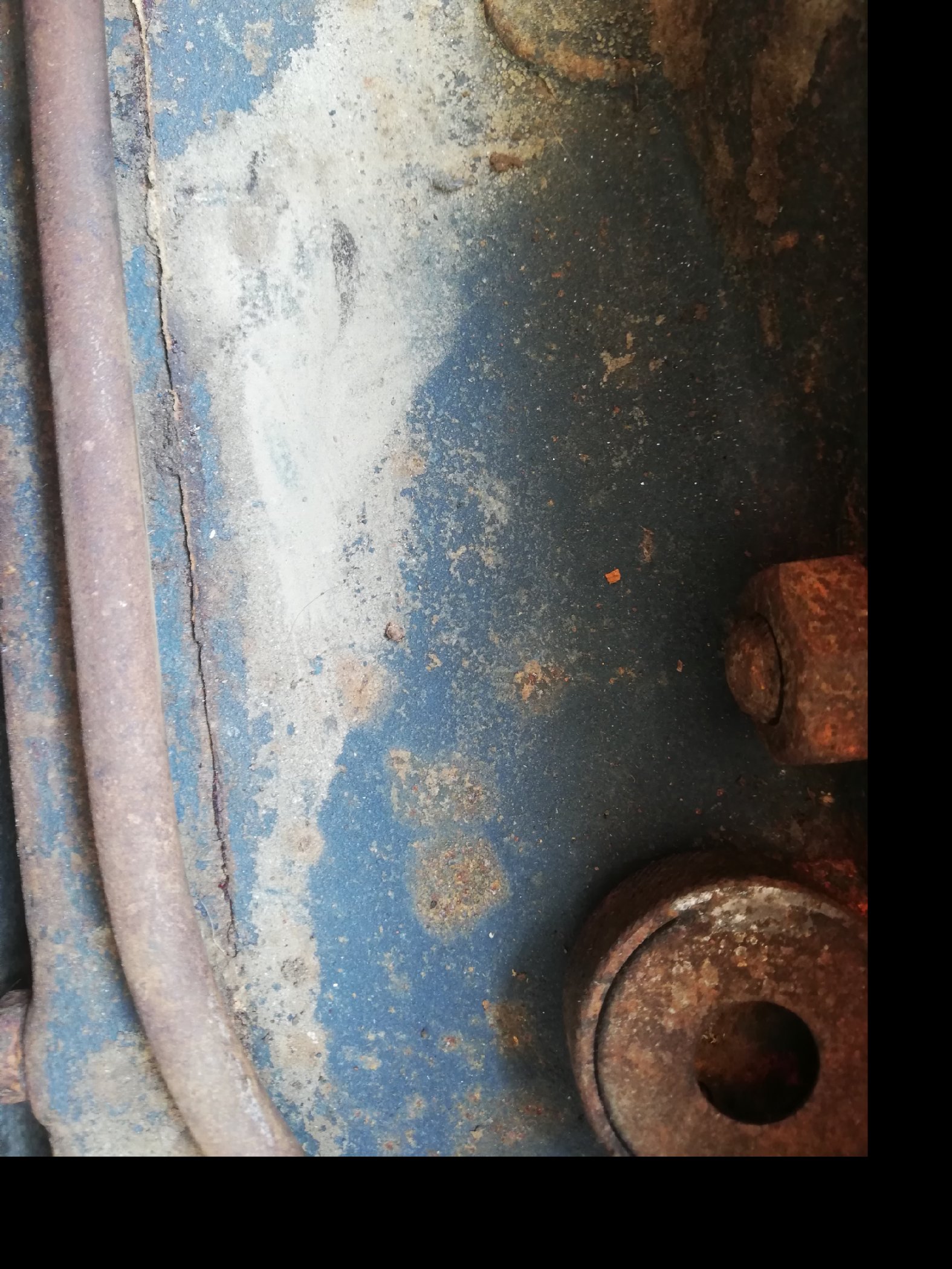 Das sind Reste der Originalfarbe. Der Motor ist wohl irgendwann zwischen 1941 und Kriegsende gebaut worden, da waren die Dieselmotoren in einem schmutzigen dunklen Blau-Grau lackiert. Ich habe bei meinem, da ist die Farbe noch recht gut erhalten, mal diverse Farbkarten dran gehalten und bin irgendwo zwischen Lanz-Blau LM5195 und Graublau RAL5008 rausgekommen.