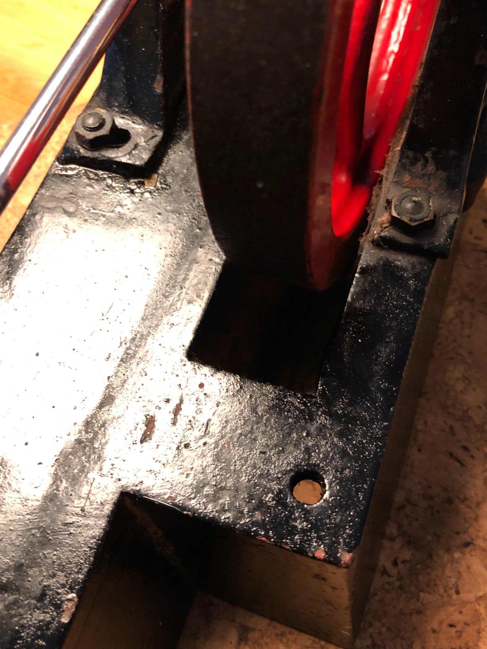 Ist das wirklich ein Vorführungsmodell ? Am Sockel sind einige Löcher und Anschlüsse, welche mich ein wenig zweifel lassen. Der Luftanschluss jedoch deutet auf ein Modell hin. Oder Reste einer Dampfleitung ?