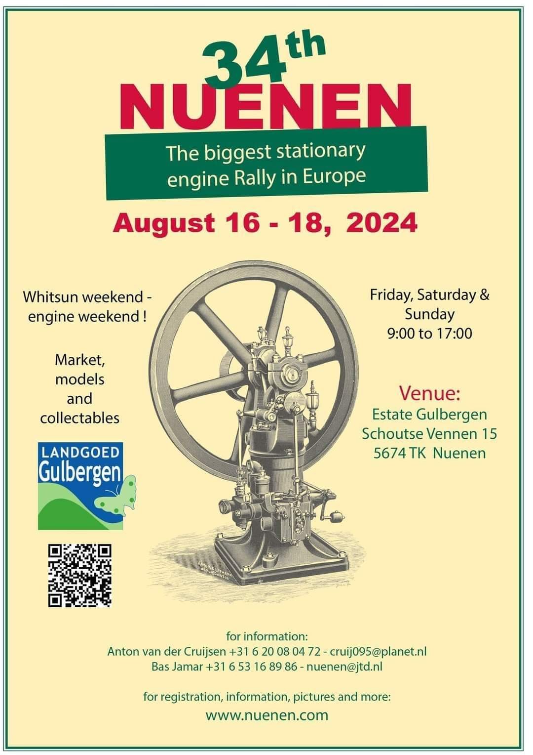 Am 18-20 Mai 2024 findet das 34.Internationale Standmotoren Treffen in Nuenen statt.