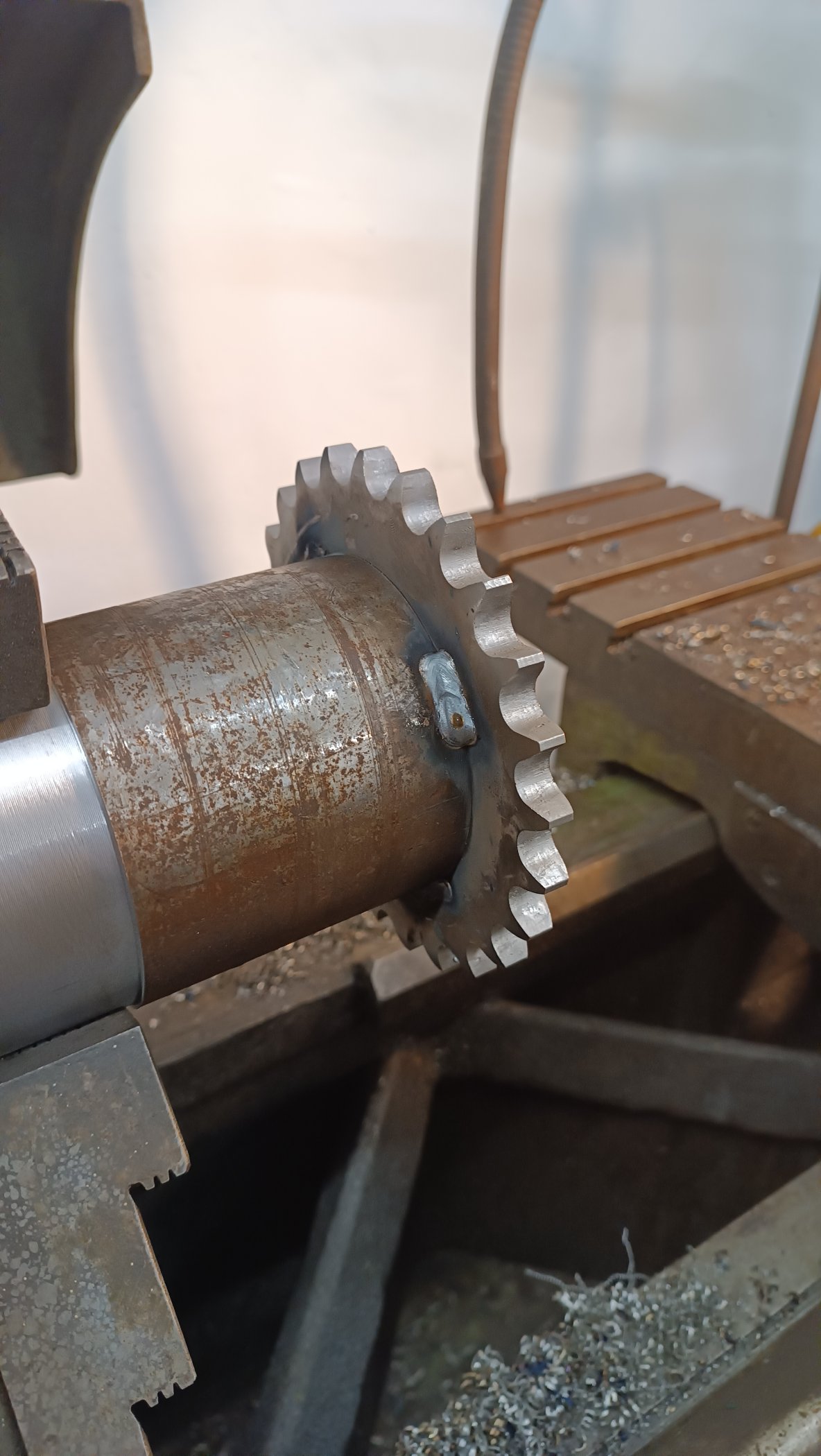 Hallo Zusammen. Ich habe mich an das Nachbauen eines abgenutzten Kettenritzels vom Kramer K18 (Güldner GW20 Motor) gemacht. Das Ritzel war stark verschlissen und einige Zähne waren kurz vor dem Abbrechen. Nach intensiver Suche im Internet habe ich ein Ritzel Gefunden das man jedoch noch passend machen musste. Also habe ich ein Adapter gedreht, Das Ritzel von hinten auf geschweißt und innen aus gedreht. Anschließend habe ich eine Bohrschablone angefertigt und mit dieser dann die Löcher übertragen. Der Werkzeugstahl hat sich jedoch sehr zäh verarbeiten lassen was sich in der Arbeitszeit von fast 4 stunden bemerkbar gemacht hat. Nun ist das Ritzel jedoch montiert und es läuft einwandfrei. Hoffe das Ganze passt trotzdem hier ins Forum auch wenn es eher weniger mit dem Motor selbst zutun hat jedoch sitzt das Ritzel auf der Nabe der Schwungscheibe vom GW20. ;)