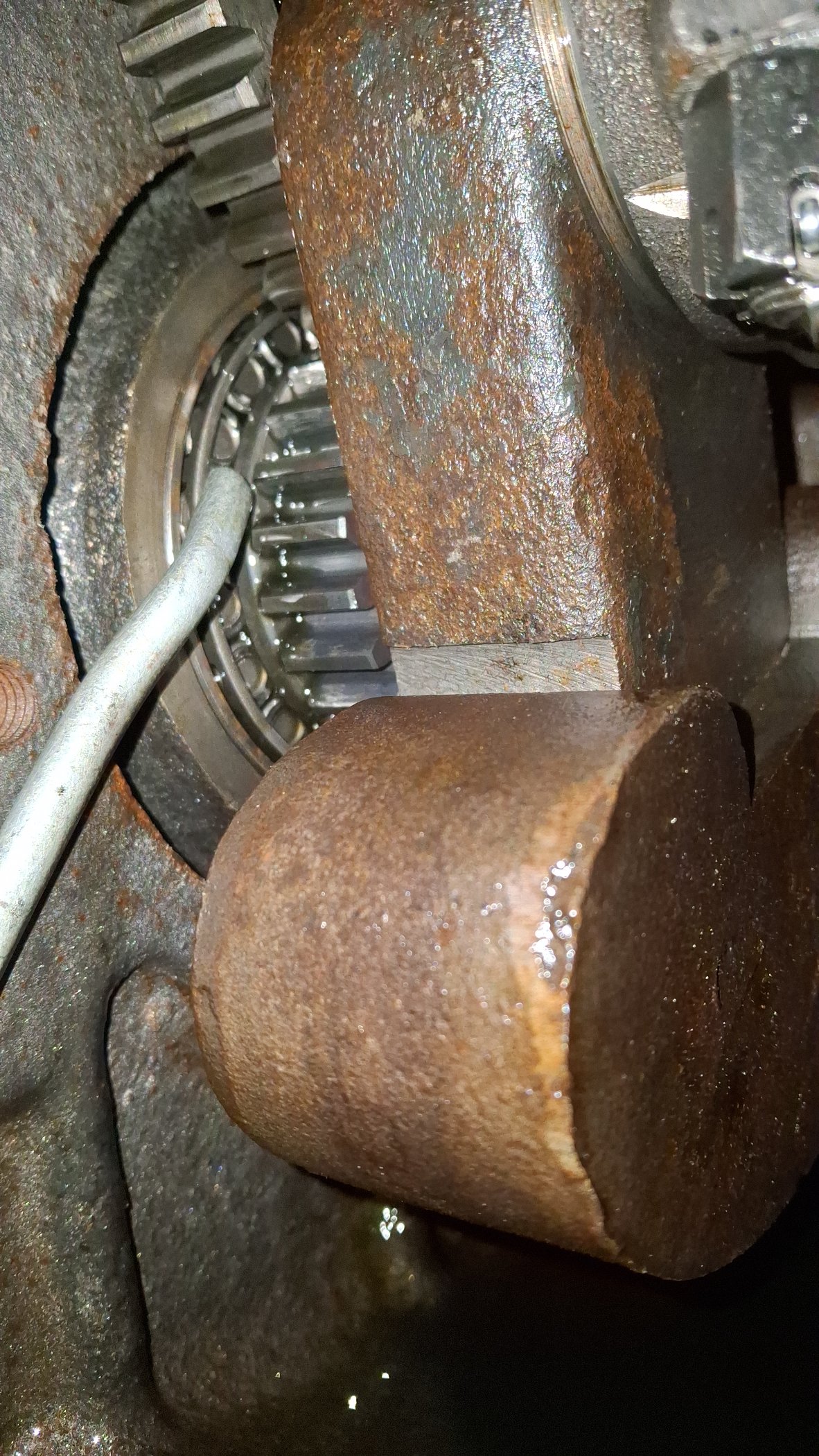 Darin sind zwei Ölleitungen zu den Hauptlagern verbaut. (Rollenlager