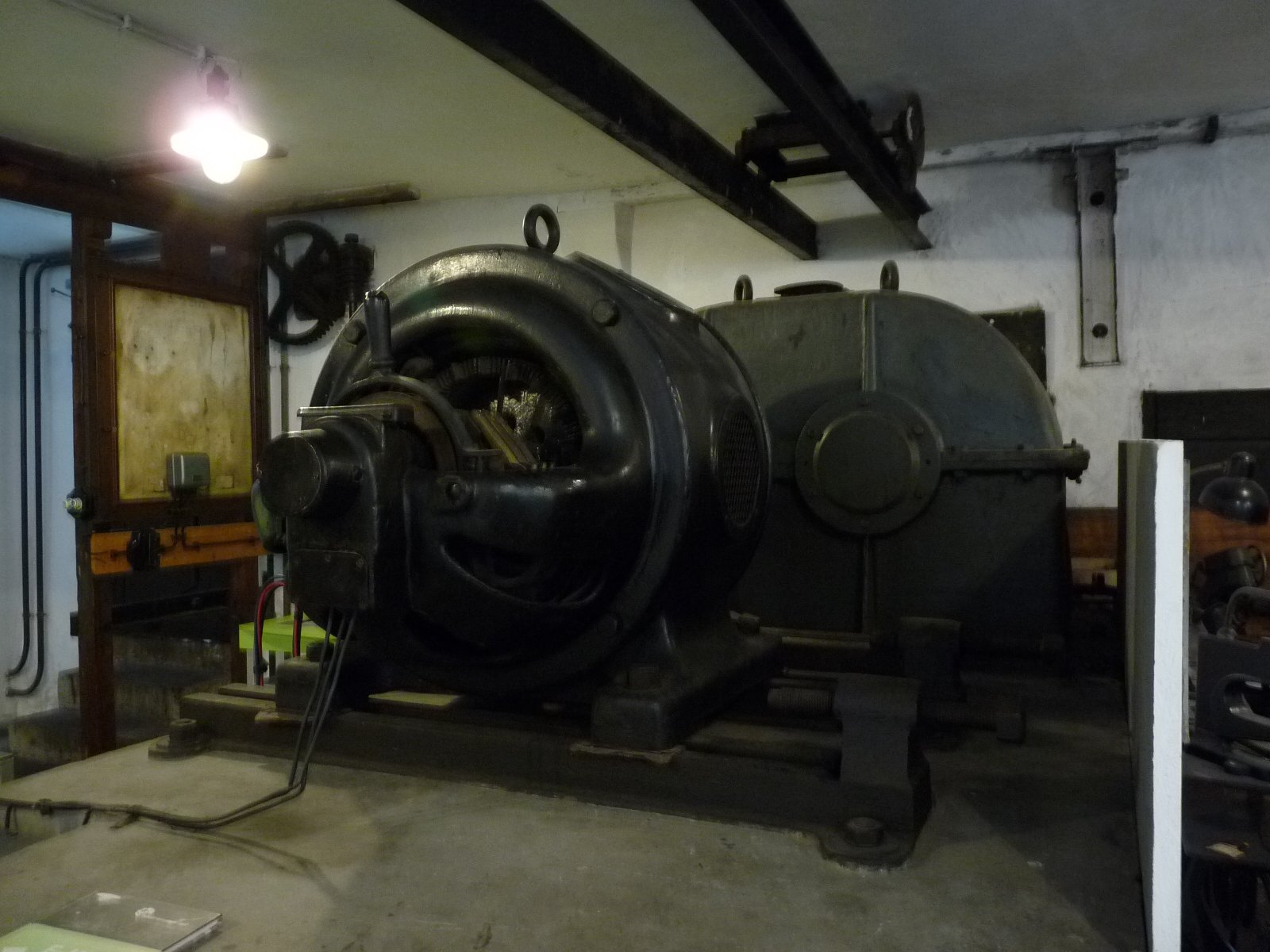 Hier noch ein Generator der an einem Getriebe mit Wasserrad hängt für die Stromerzeugung.