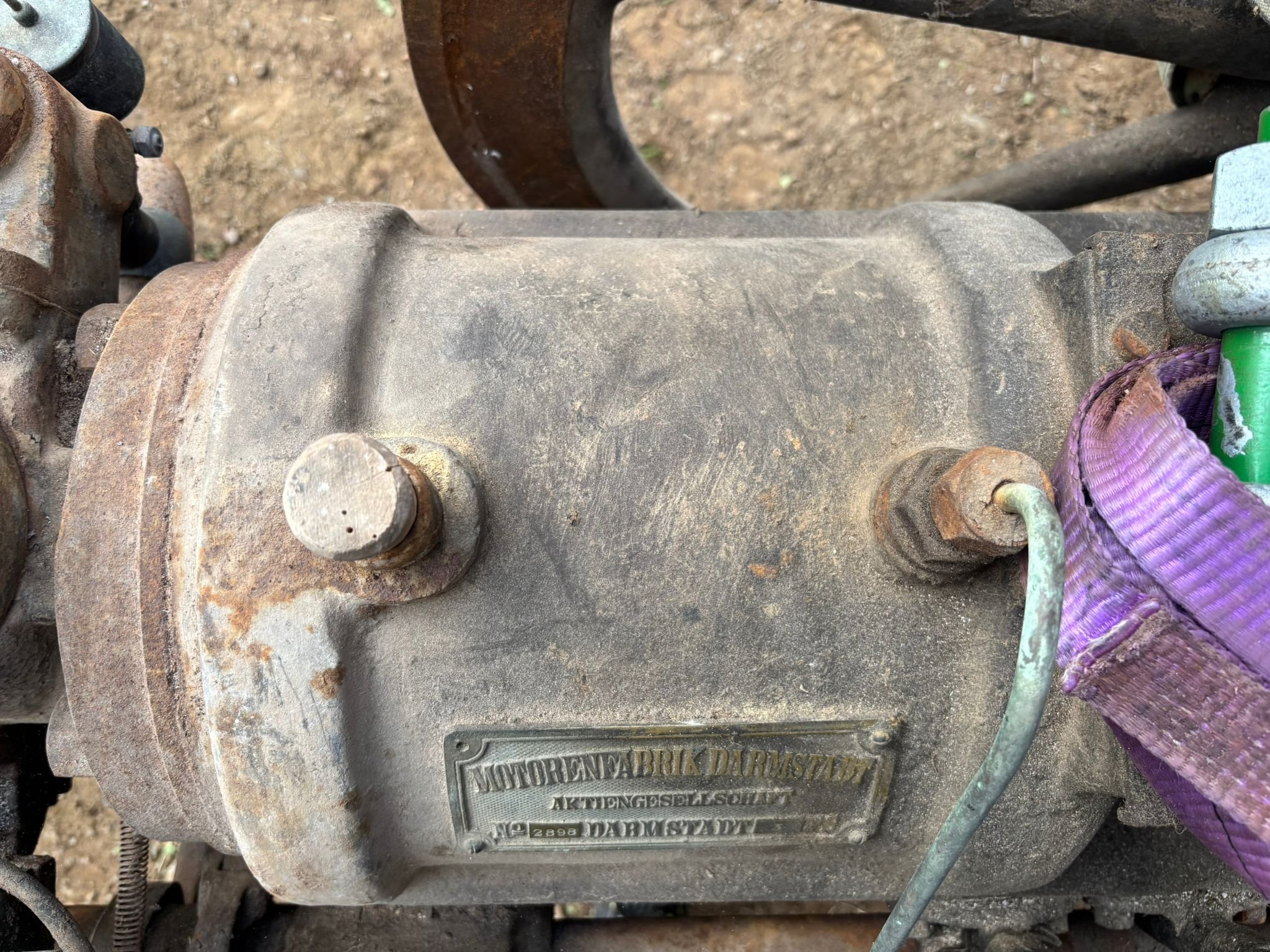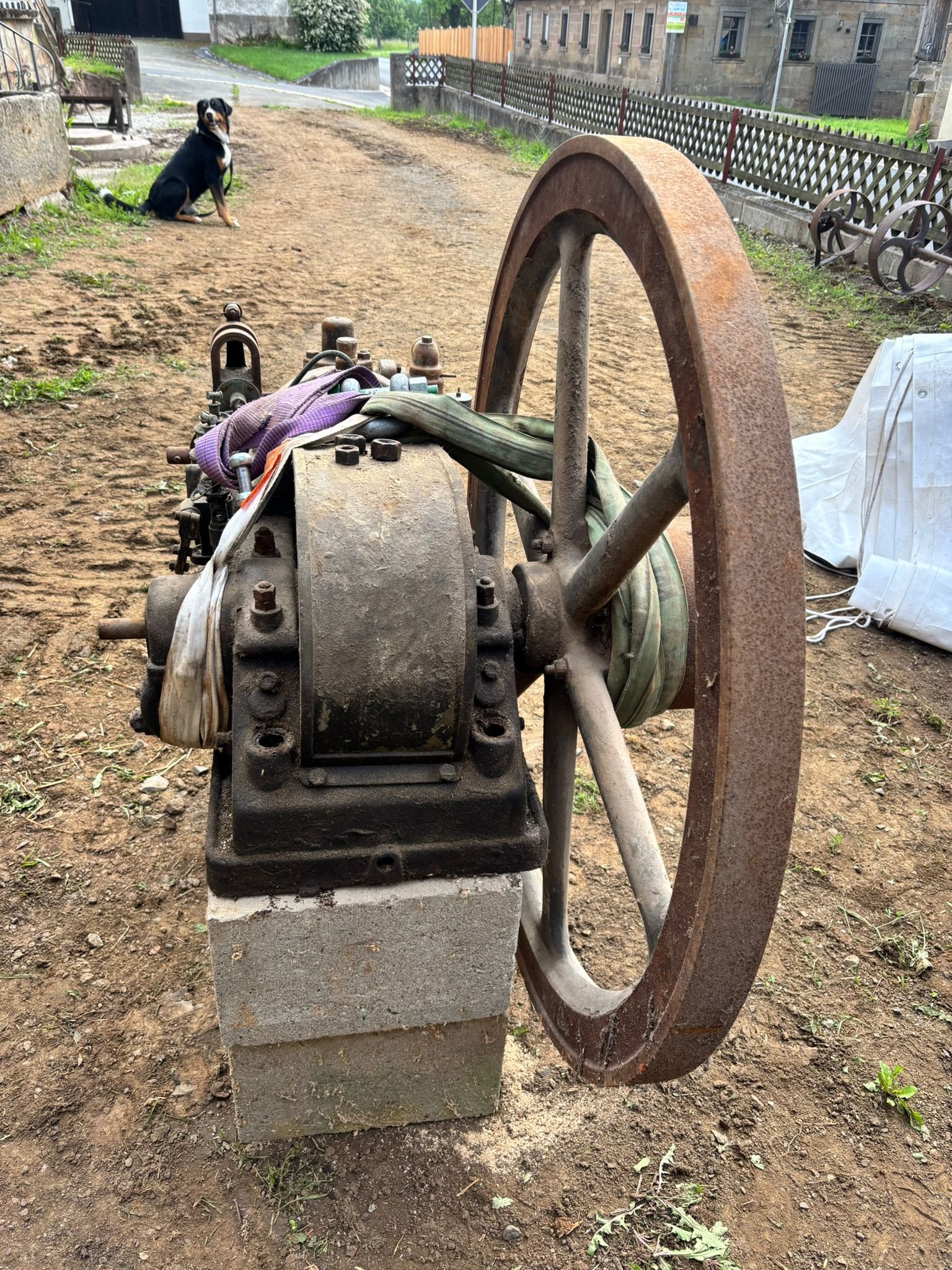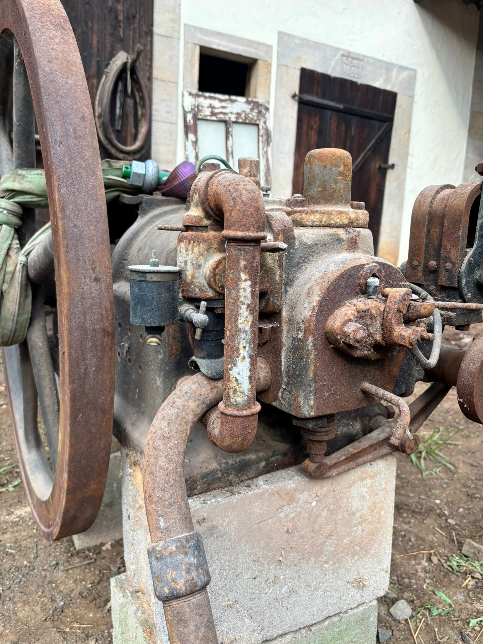 Der Motor ist relativ klein, wiegt 438 kg und hat 1,10 m Schwungrad, Leistung 3 PS Motornummer 2898
