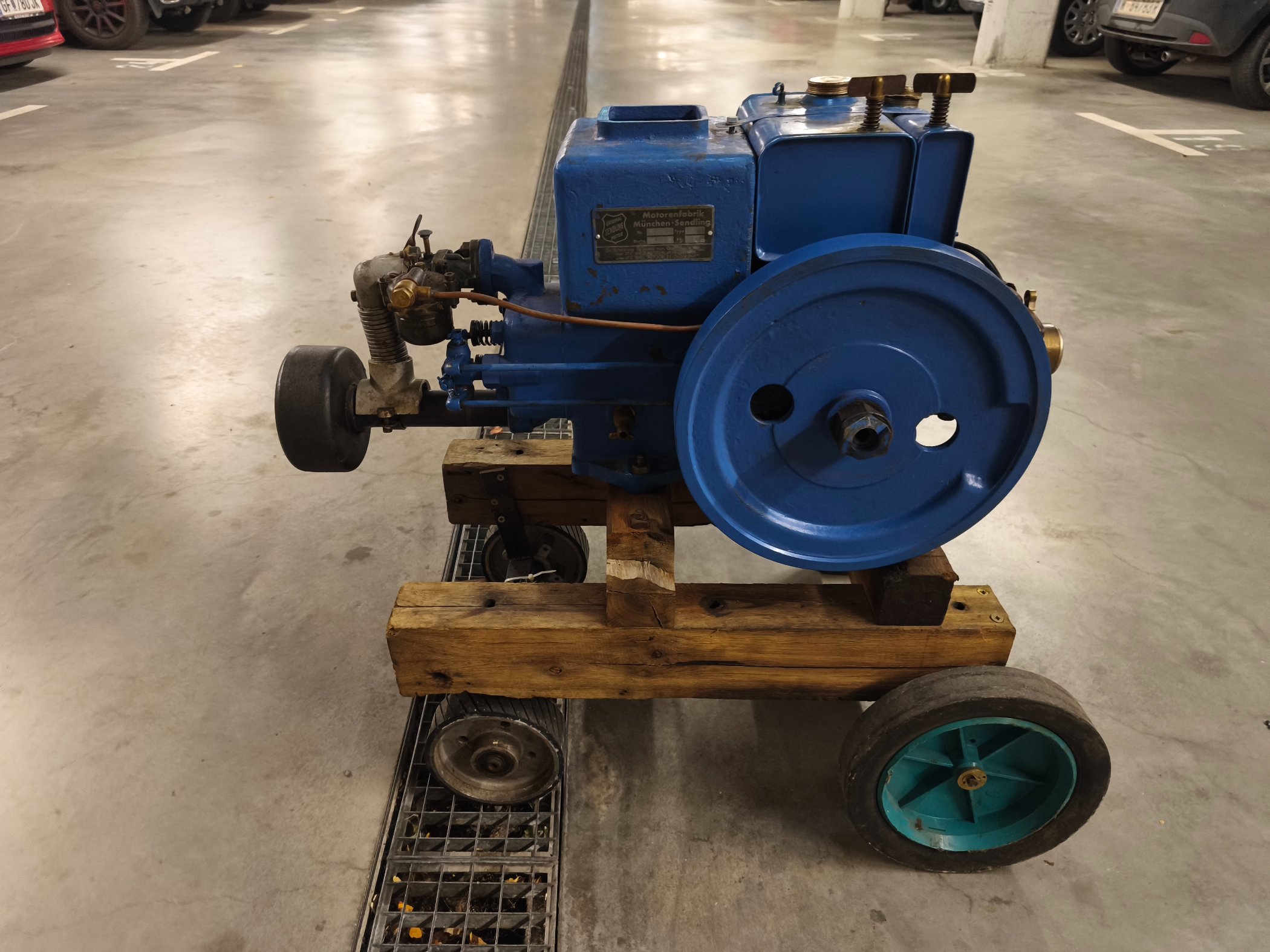 Der Motor ist bis auf die Kurbel vollzählig und in einem netten Blau gehalten, ich behaupte übermalt, aber in Ordnung, gefällt mir ganz gut.