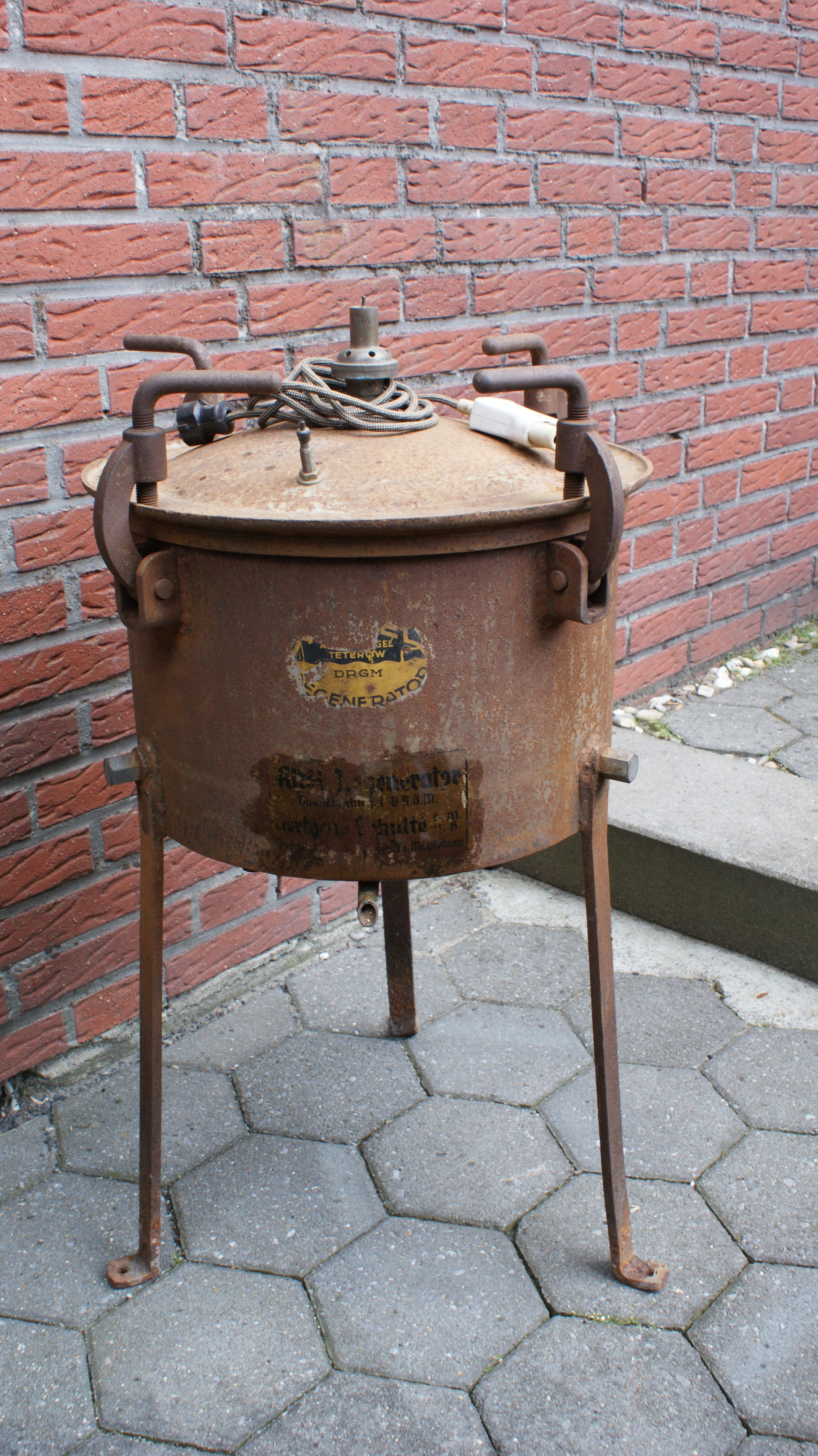 Ich habe da mal ein Bild von so einem Altölaufbereiter. In das höher liegenden Behälterteil wird das ("Altöl") einmal benutzte Öl welches sich z.B. in der Kurbelwanne sammelt, eingefüllt. Es durchsickert dann eine dicke Schicht Tücher und sammelt sich dann in dem vorderen Behälterteil mit dem Glasröhrchen. Das Öl kann dann für weniger gute Aufgaben verwendet werden. Die Altölaufbereiter gab es in verschieden Größen.