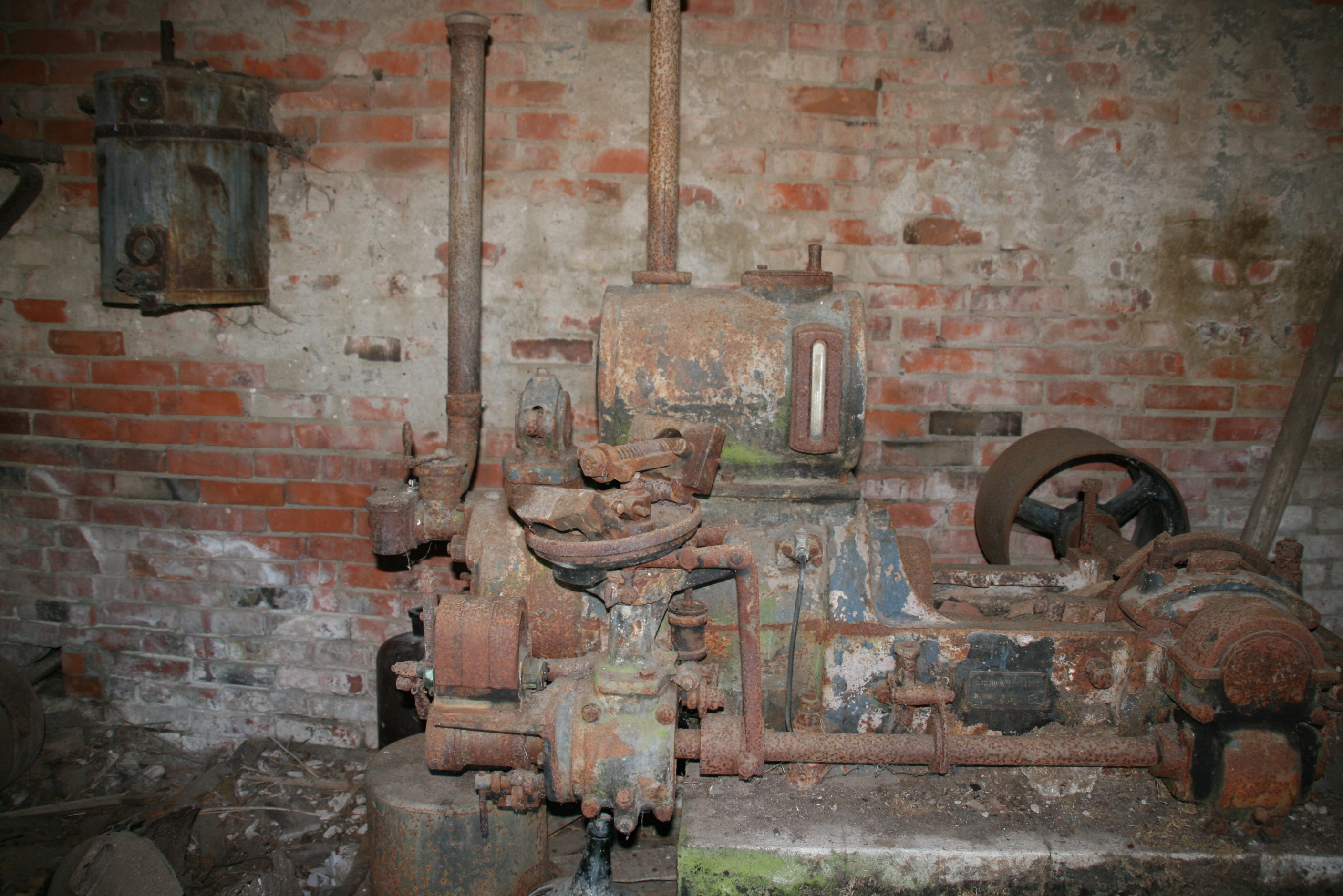 Leider fehlt bei dem Motor das Schwungrad ( Opfer einer Schrottsammlung der Feuerwehr in den 1970ern )