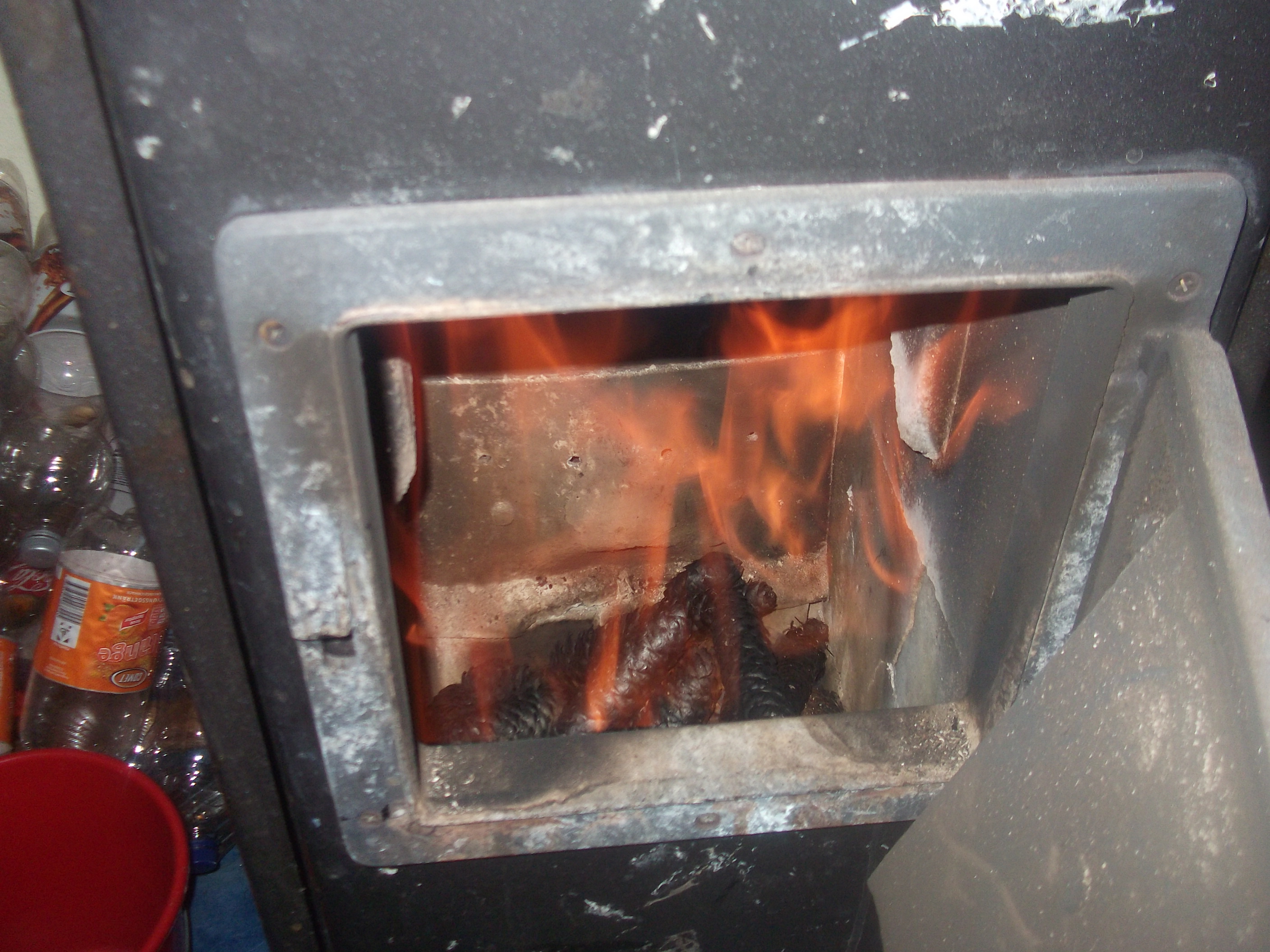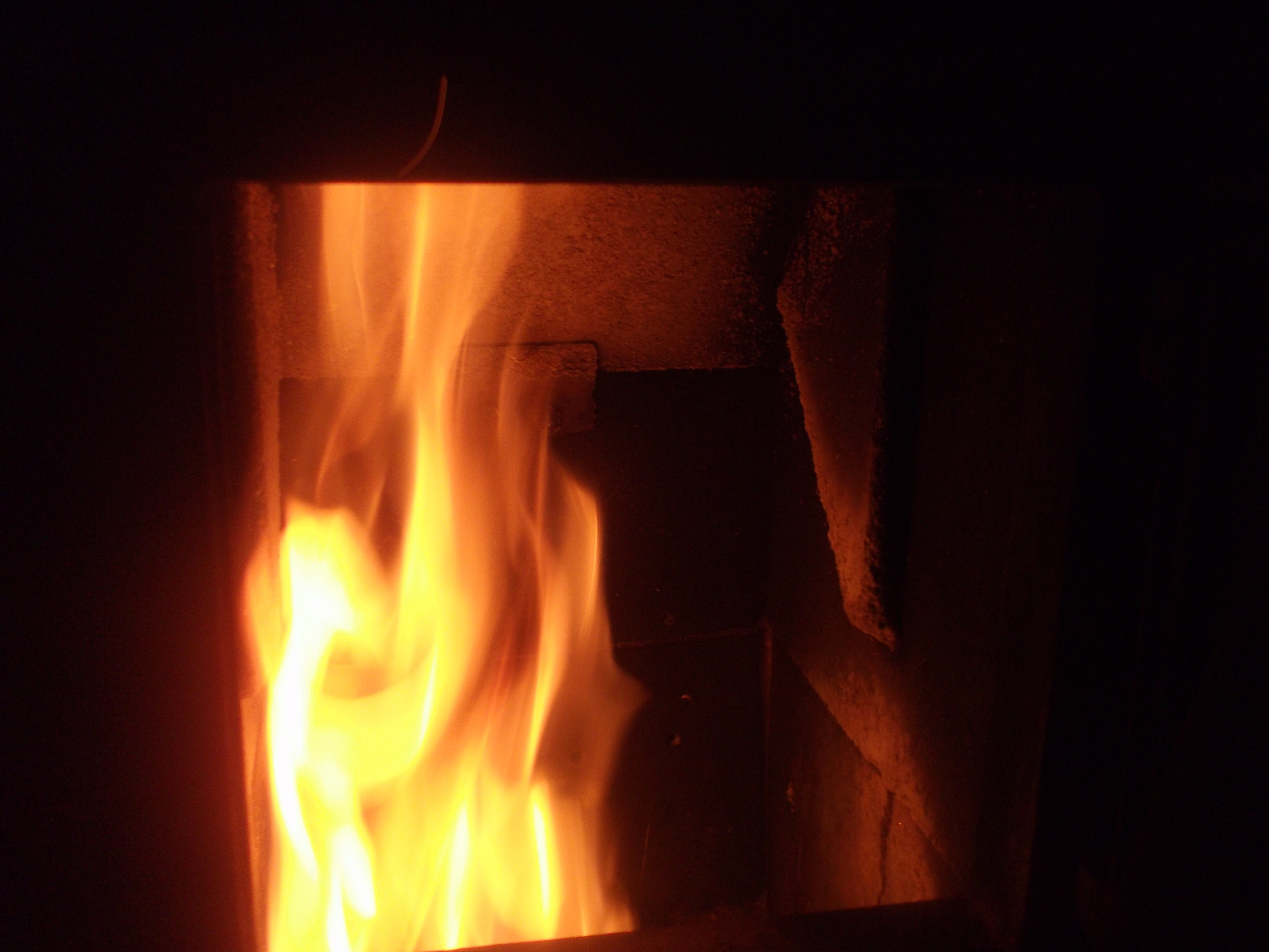 Bericht : Als ich gegen 17 Uhr mit dem Sieben von der Erde der Gartenspartendamen fertig war bin ich in den Wald und habe nach Zapfen geschaut .Es waren welche da allerdings da der Wald auf einer Südseite liegt waren sie schon sehr Trocken von dem warmen Wetter .Denn ich hole mein Material immer an einen Wald der Nordhang hat da sind die Zapfen immer besser das ist klar was den Feuchtigkeitsgehalt betrifft .Ich habe aber dennoch einen Sack gesucht der nicht so trocken war was schwer war denn ich hatte ja versprochen das zu erledigen .Gegen 19 Uhr habe ich den Ofen in der Werkstatt angeheizt mit ca.1,5 Kilo .Ich habe gleich gemerkt das die Post abgeht sie waren zu trocken .Aber ich wollte nicht aufgeben bis das Gas zu sehen wäre .Als die erste Brennung weg war hatte sich schon so eine Enorme Hitze ausgebreitet das ich schon abbrechen wollte denn das Gas das bildet sich erst nach einer gewissen Weile das hat vieleicht mit den Schamottsteinen zu tun die dann konzentriert auf die Zapfen wirken wenn sie heiß sind .Ich habe aber dennoch noch mal nachgelegt und beobachtet ,Dann sind sie erschienen aber nur wie ich vermutet hatte in geringem maße .Weil das Feuer von den Glühenden vorigen so intensiv war obwohl ich die Zugklappe gedroselt hatte ist das rote Feuer dominant gewesen und nur an der Peripherie waren die Blauen Gase zu sehen ,was normalerweise bei dem von mir geschilderten Vorbericht genau umgekehrt war .Ich sagte los Tochter mach mal Photos nun mit dem Handy .Aber nicht mal einen Meter kam sie bei geöfneter Ofentür rann ohne sich zu verbrennen oder den Handy zu beschädigen sagte sie das geht nicht mit dem Feuer das ist zu heiß so nah kann ich nicht ran das geht nicht gut und die Hände verbrennen noch schneller es ging nicht vor Hitze ich war schon aleine vom Anheizen zodelwelk und vom beobachten .So mußte ich die Sache einstweilen beenden weil wir nicht so nahe an das Feuer kamen um das zu sehen das Gas halt .Es war nicht das was ich wollte Zeigen das Gas war zu wenig und da wären die Nouancen auch kaum sichtbar gewesen weil das rote Hitzefeuer alles dominiert hat .Das geht nicht mit den Trockenen Zapfen die sind nur wenn mann Speed machen will und schnellstmöglich Wärme will .Dieser Anlauf war zum Scheitern verurteilt .Sei mir nicht böse aber noch ist das Thema nicht vom Tisch und der Drops gelutscht .Wenn es etwas mehr Gas gegeben hätte zumindist 50 % da hätte ich meinen Schwager angerufen der hat ne große Nikon mit nem Teleobjektiv der hatte da wohl was machen können aber es war zu wenig vom Eigentlichen Gas da .Und so hebe ich mir diese Option auf wenn alles auf den Punkt passt und dann schnappen wir das Gas .Aber ich möchte doch nicht ohne etwas von dem gehen was ich gesagt habe und sagen das der Werkstattofen kohlschwarz war als ich ihn anheizte weil ich zum Schluß alles son Kram verbrannt habe als es warm wurde .Ich werde den Brennraum mal zeugen wenn er kalt ist da könnt ihr mal sehen was ich meine mit Sauberer Verbrennung .Ich bin wieder total enttäuscht aber ich hatte es geahnt, es hat nicht gepasst son Mist. Ende Teil 1: