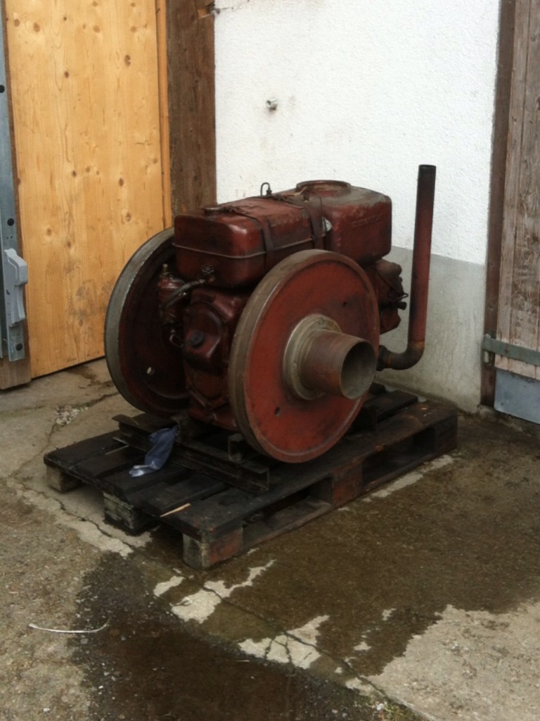 Hier mein lang ersehnter, nun endlich gefundener Standmotor Deutz MAH 916 des Jahrganges 1951 mit der speziellen Drehzahl von 1000 U/min im Raume Bodensee, welcher an einem Steinbrecher lief. Zur Zeit steht nun der Beginn der Überholung an, da die Kurbelwellenlager rauschen und leider der obere Bügel der Oelpumpe gebrochen ist.( wer hat einen solchen herumliegen?)