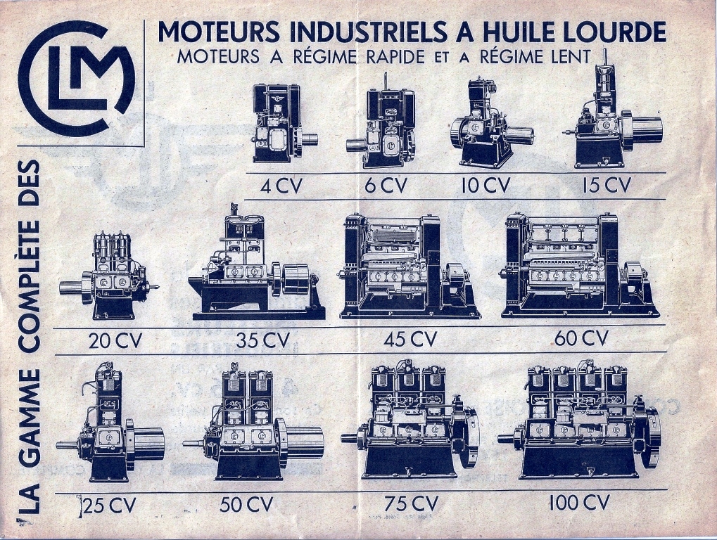 Ich würde mal auf CLM (Compagnie Lilloise de moteurs) aus Frankreich tippen. Das Schwungrad mit Schaufeln wurde bei diesen Motoren als Gebläse für den angebauten Kühler verwendet. Das sah wahrscheinlich mal so aus wie hier: