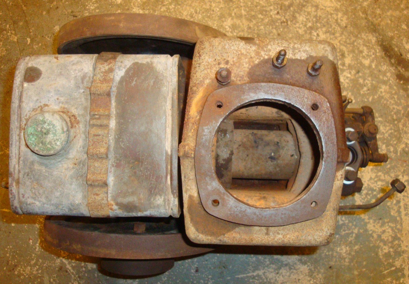 Ich könnte mir vorstellen, daß oben eine zweite Rohrverbindung aufgeflanscht war, durch die das von unten