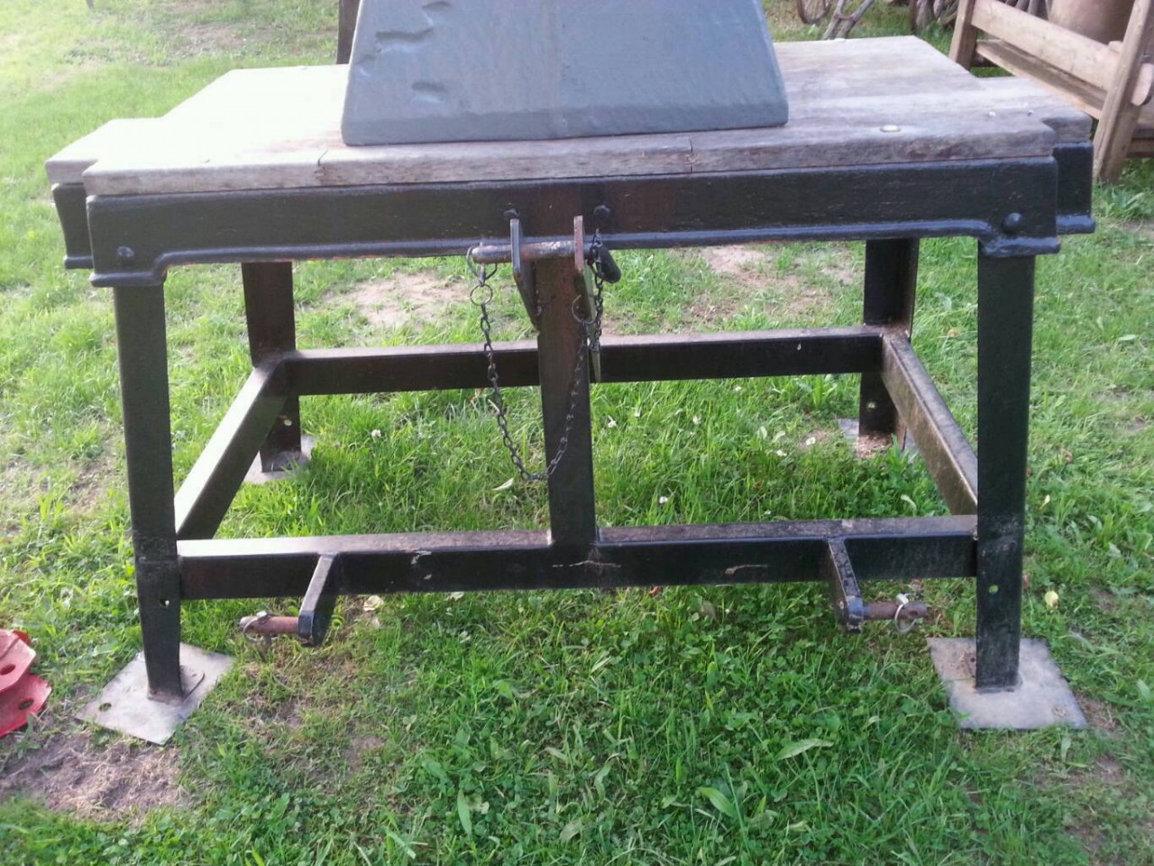 Die Gussformen für das Hauptteil scheinen gleich zu sein, allerdings ist bei Eurem die Spalttisch-Befestigung anders gemacht. Bei meinem Spalter ist das eine mittige Schraube, auf dem Bild nicht sichtbar.