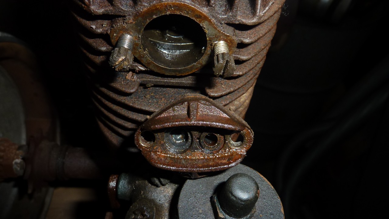 Hat keinen Zylinderkopf zum verschrauben 50mm Hub 50 mm Bohrung,habe die Zündkerze laß größenverhältnis auf dem Zylinderkopf gelegt.