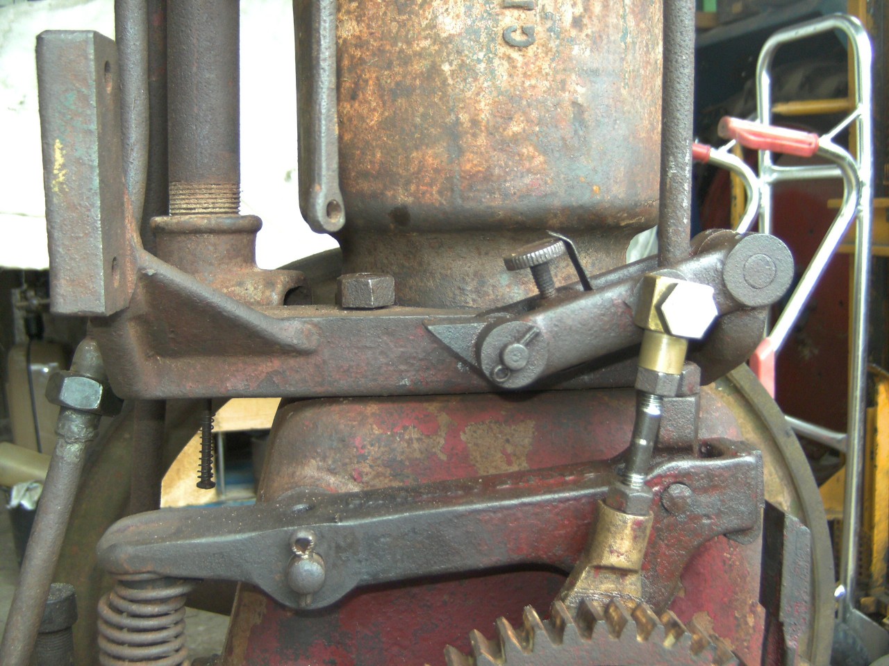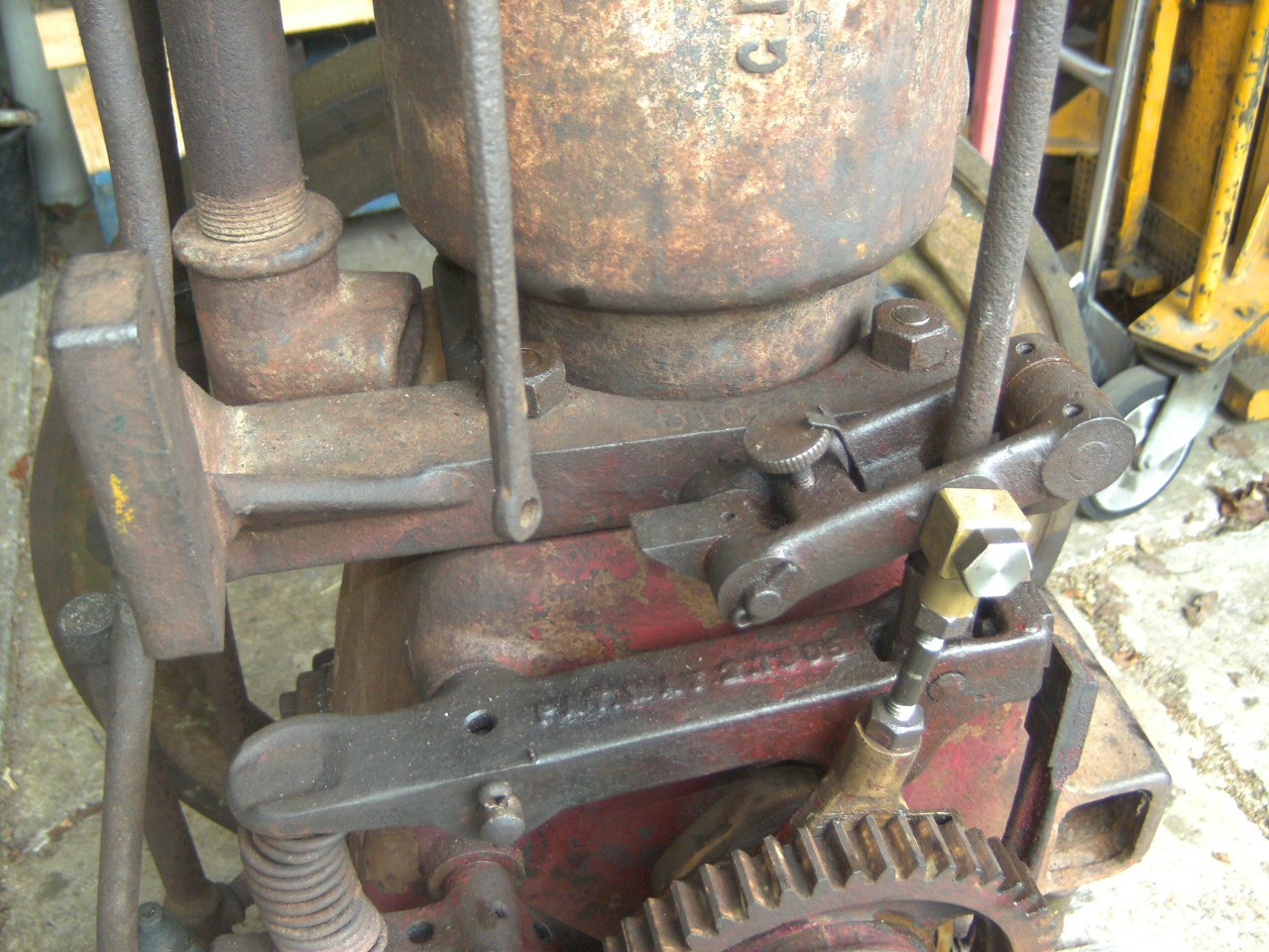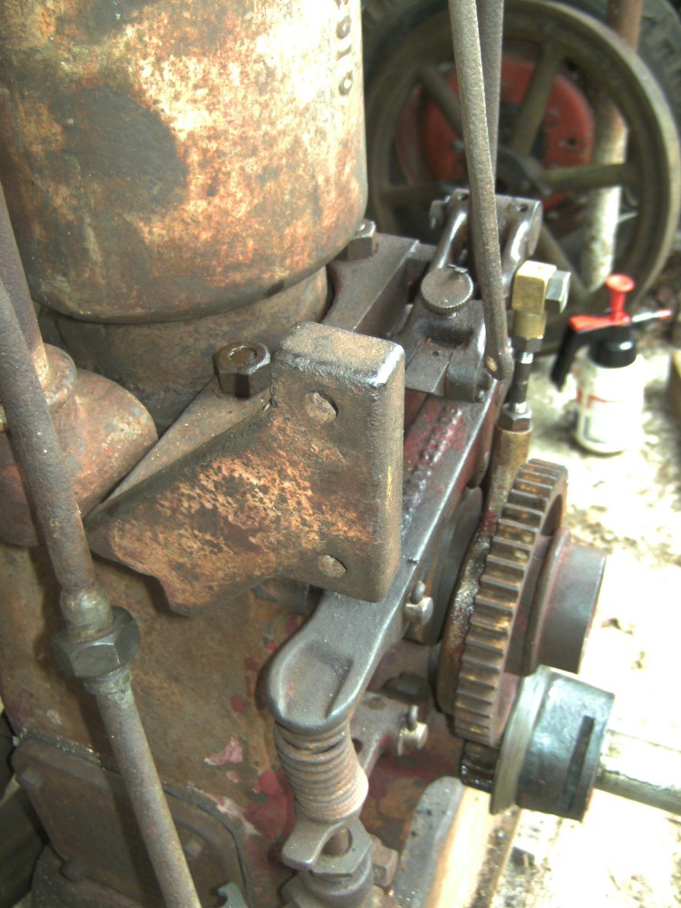 Der hier passen besser mit nur zwei Schrauben. Der obere hat vier Schrauben und sitzt direkt auf die Zündhammer. Wäre auch möglich, aber dann muss man mehr forschen. Die lange Stange muss die Kontakten zu machen und öffnen gerade bei höchste Niederspannung. Wird häufig mittels ein Haken auf die Stoßstange getan, wie auch auf die Fotos von IHC Buch, aber hier wahrscheinlich von etwas rund um den Zündmagnet.
