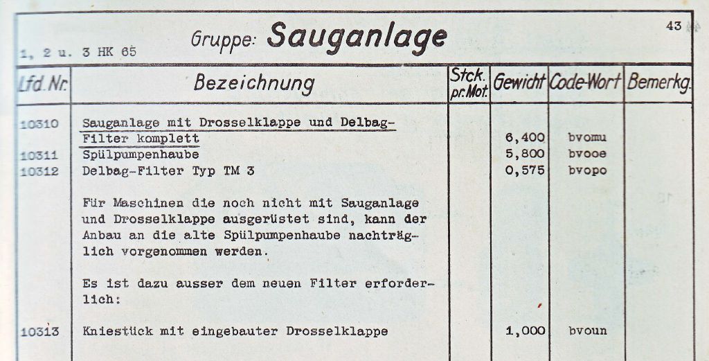 Bei mir steht in den ETLs aber immer so etwas wie "Für Maschinen älterer Ausführung". Z.B. in einer NZD-Ersatzteilliste, aber auch in einer Junkers-ETL, die wohl zum Motor 15360 gehört. Für mich schwer zu sagen, wann dieser Motor gebaut wurde ...