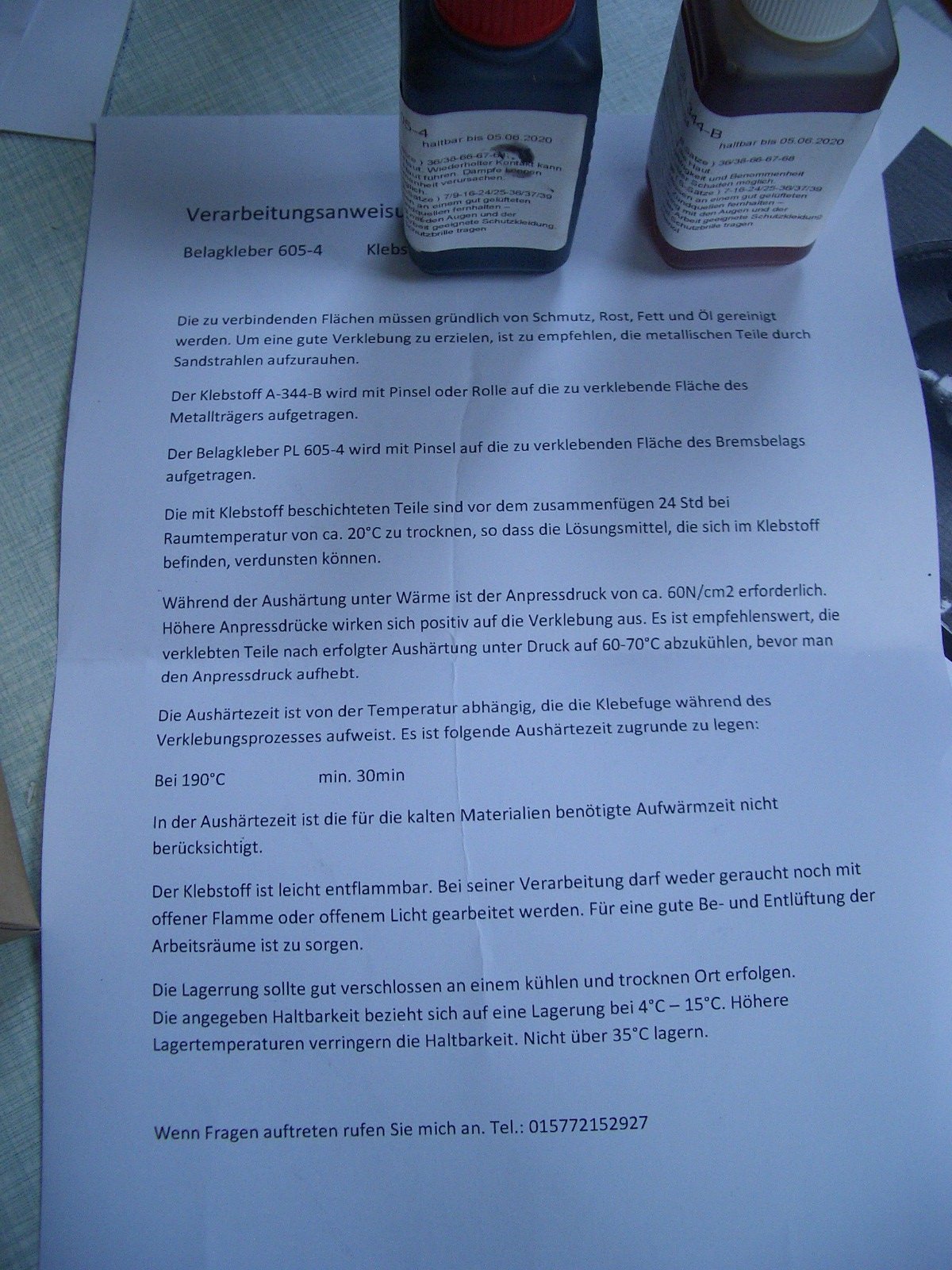 Hat jetzt nicht wirklich was mit Stationärmotor zu tun,ist mir aber zu schade ins Regal zu stellen und warten bis es abgelaufen ist!!! Habe den Kleber erst gekauft um an meinem Allgaier R22 die Beläge auf die Fliegkraftriemenscheibe zu kleben. Dabei habe ich ,wenn überhaupt, ca. 10% vom Kleber verbraucht!!! Vielleicht gibt es hier einen Mopedschrauber der ihn gebrauchen kann. Ist einfach zu handhaben, einstreichen 24 h warten, mit Druck zusammenfügen und ab in den Ofen. Danach den Backofen gut aufheizen sonst schmeckt die Pizza etwas komisch!!