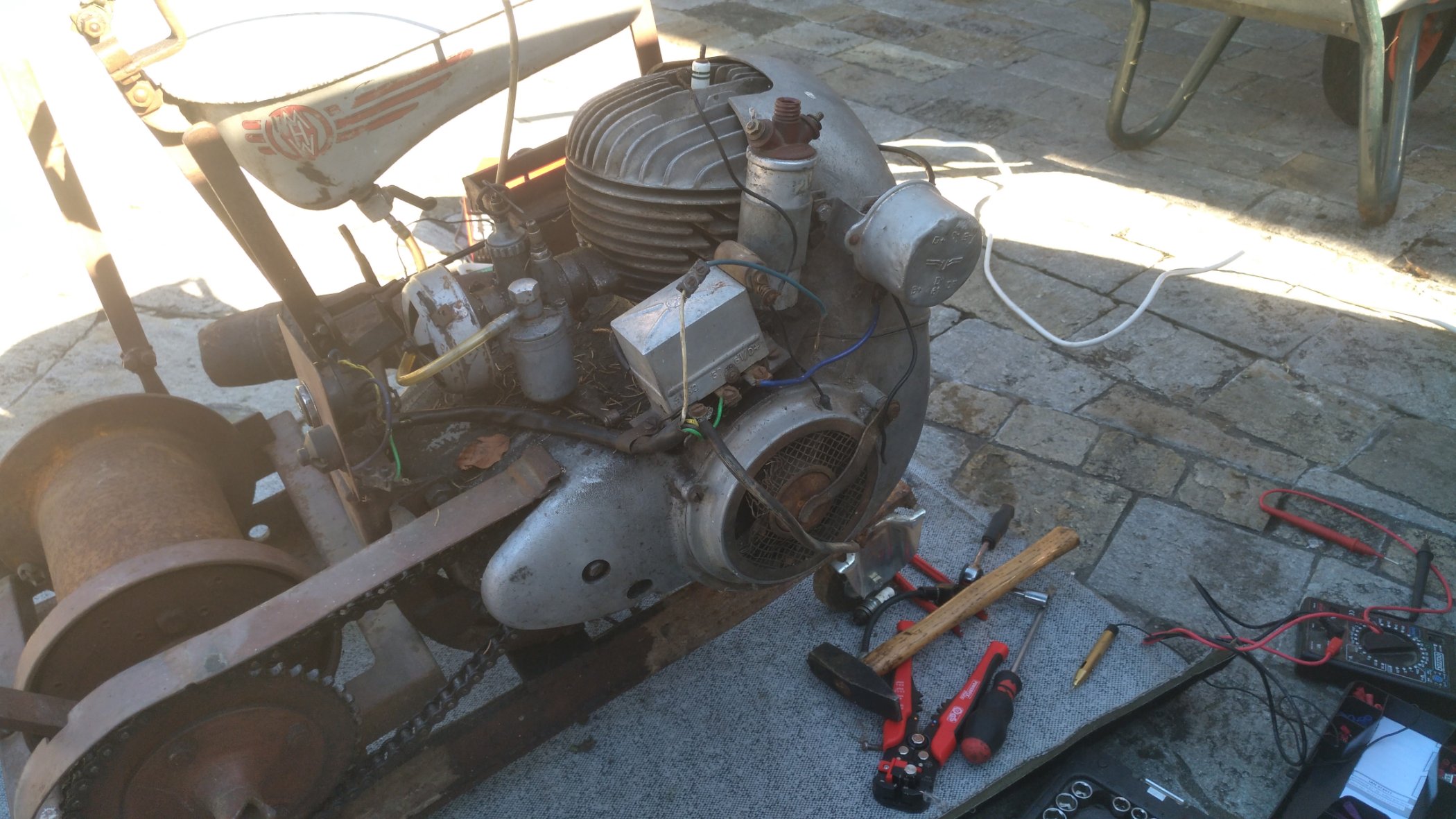 Aussehen tut er laut meinen Recherchen wie ein Sachs Motor aus einer Messerschmitt KR 175 oder KR 200 allerdings auch nicht zu 100%.