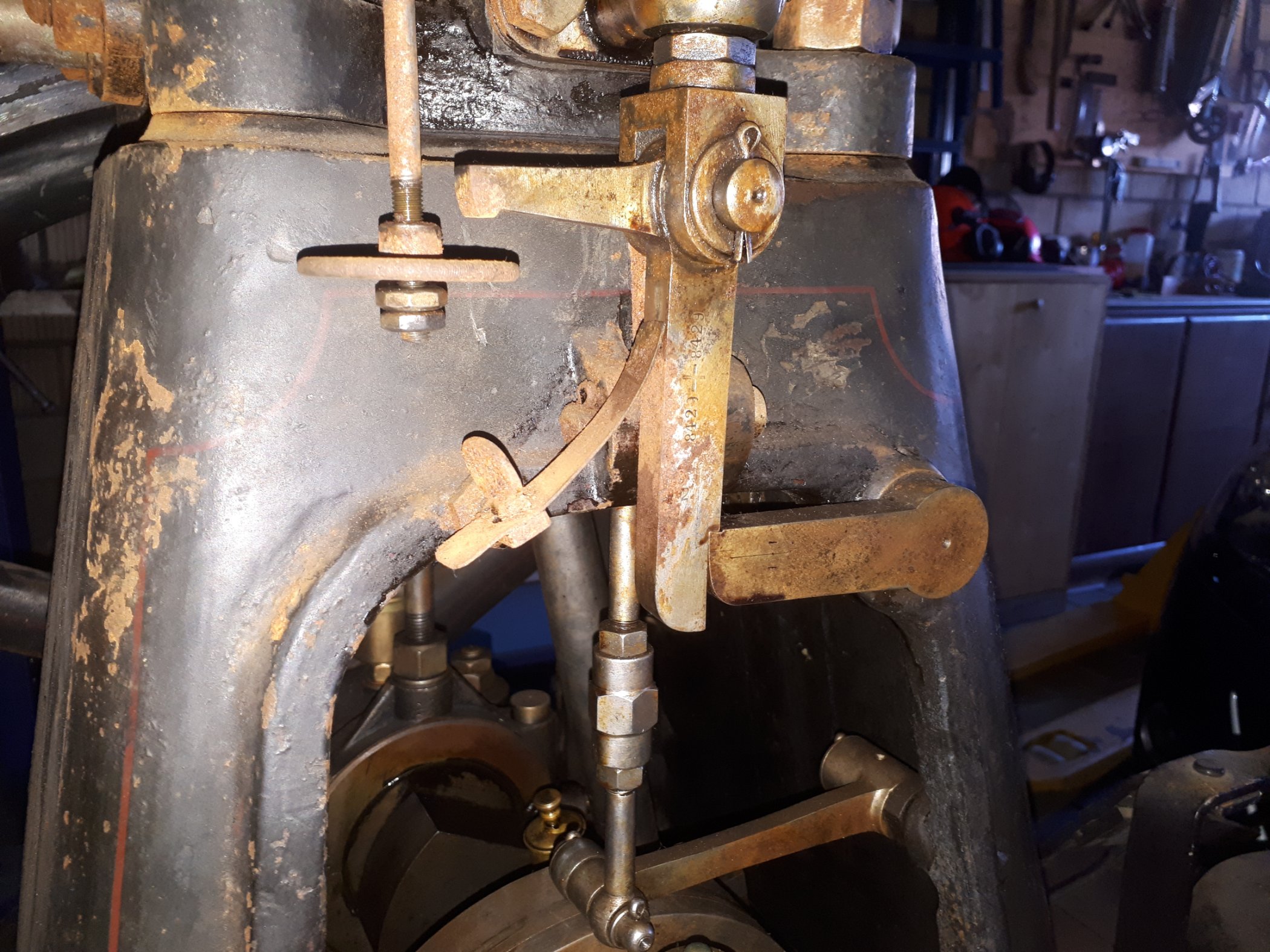 Jedoch hat sich auf dem gesamten Motor im Laufe der Jahrzehnte eine äusserst hartnäckige, bräunliche Kruste aus eingetrocknetem