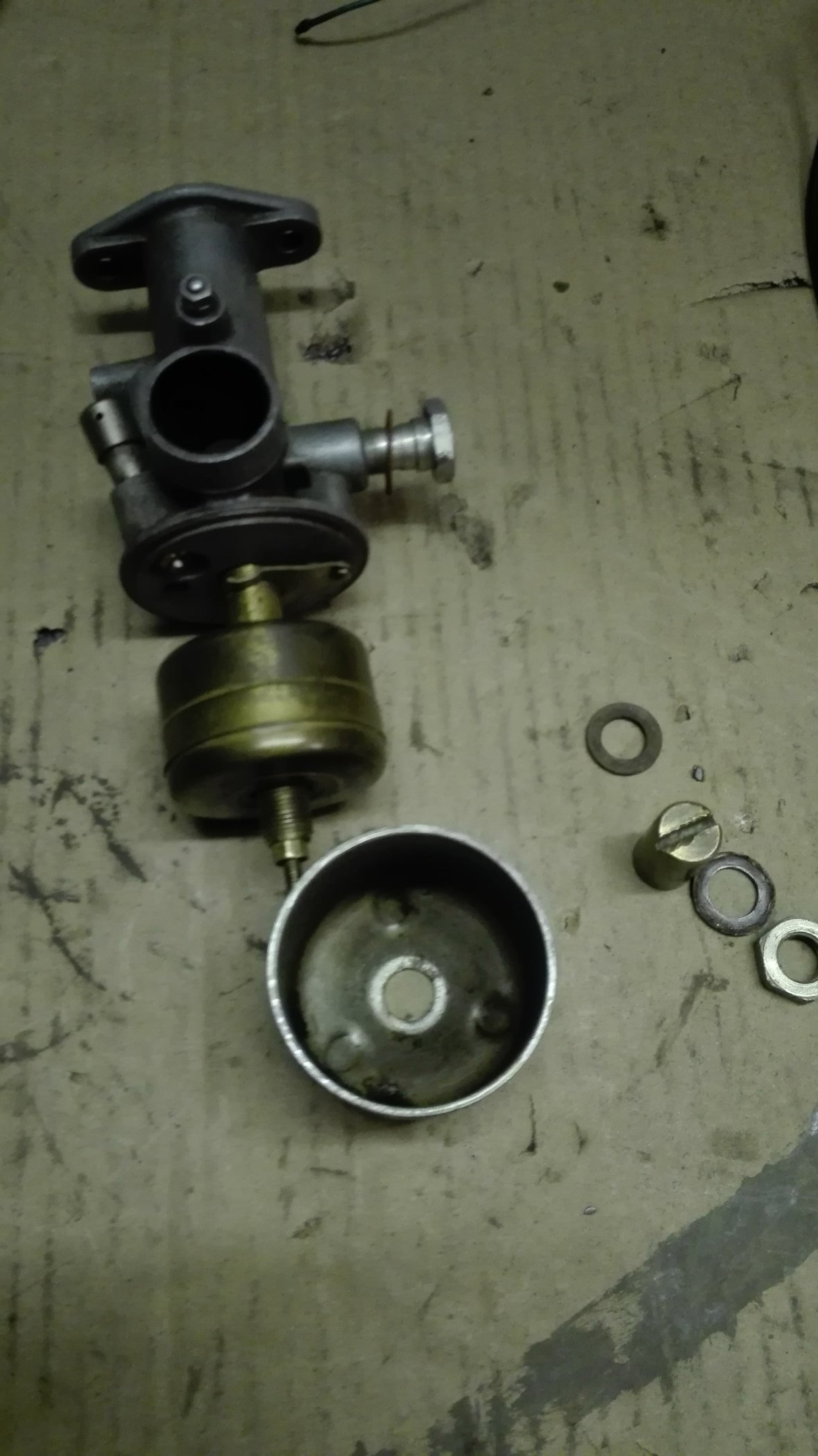 Die Walze musste wieder gehen, der Vergaser blieb und soll jetzt weg. Scheint mir komplett, Düsen, Schwimmer usw. drin, alles gängig, nur etwas verstaubt.