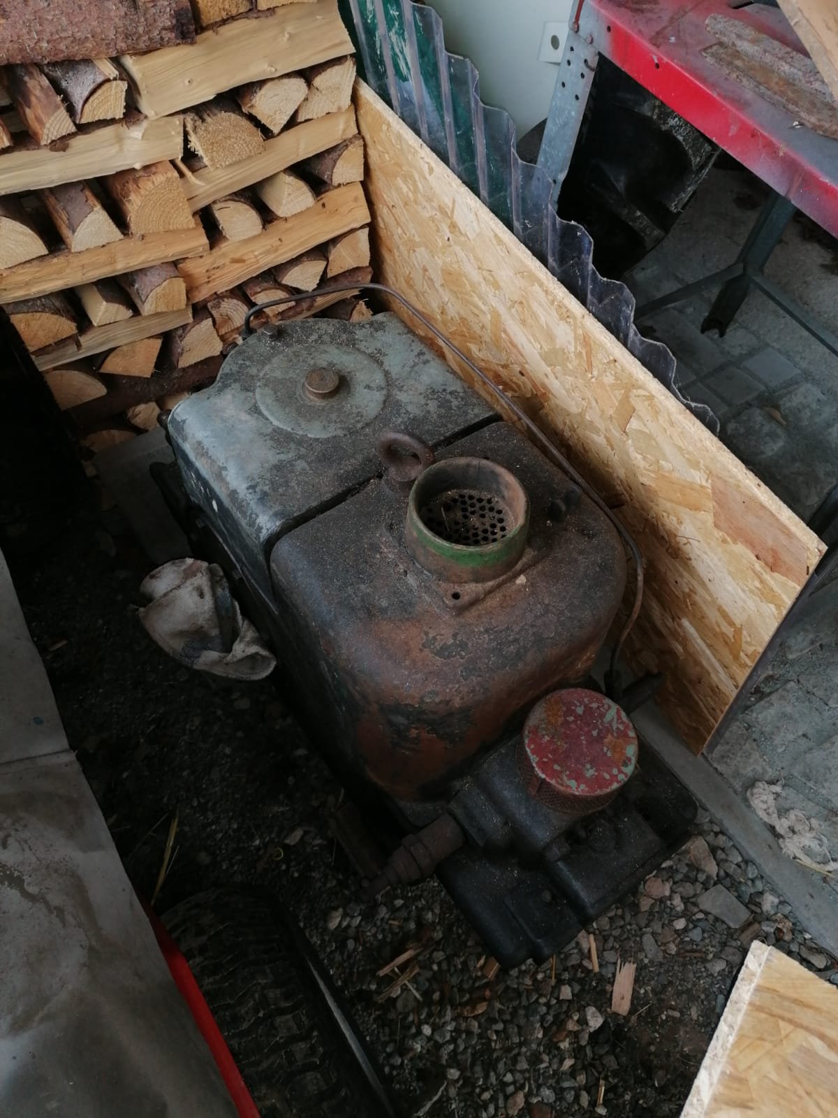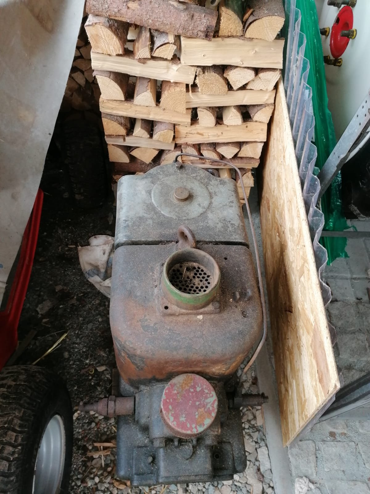 Original Fundzustand,dreht,kein Frostschaden. Schwungräder wurden zum Transport abgenommen,liegen daneben