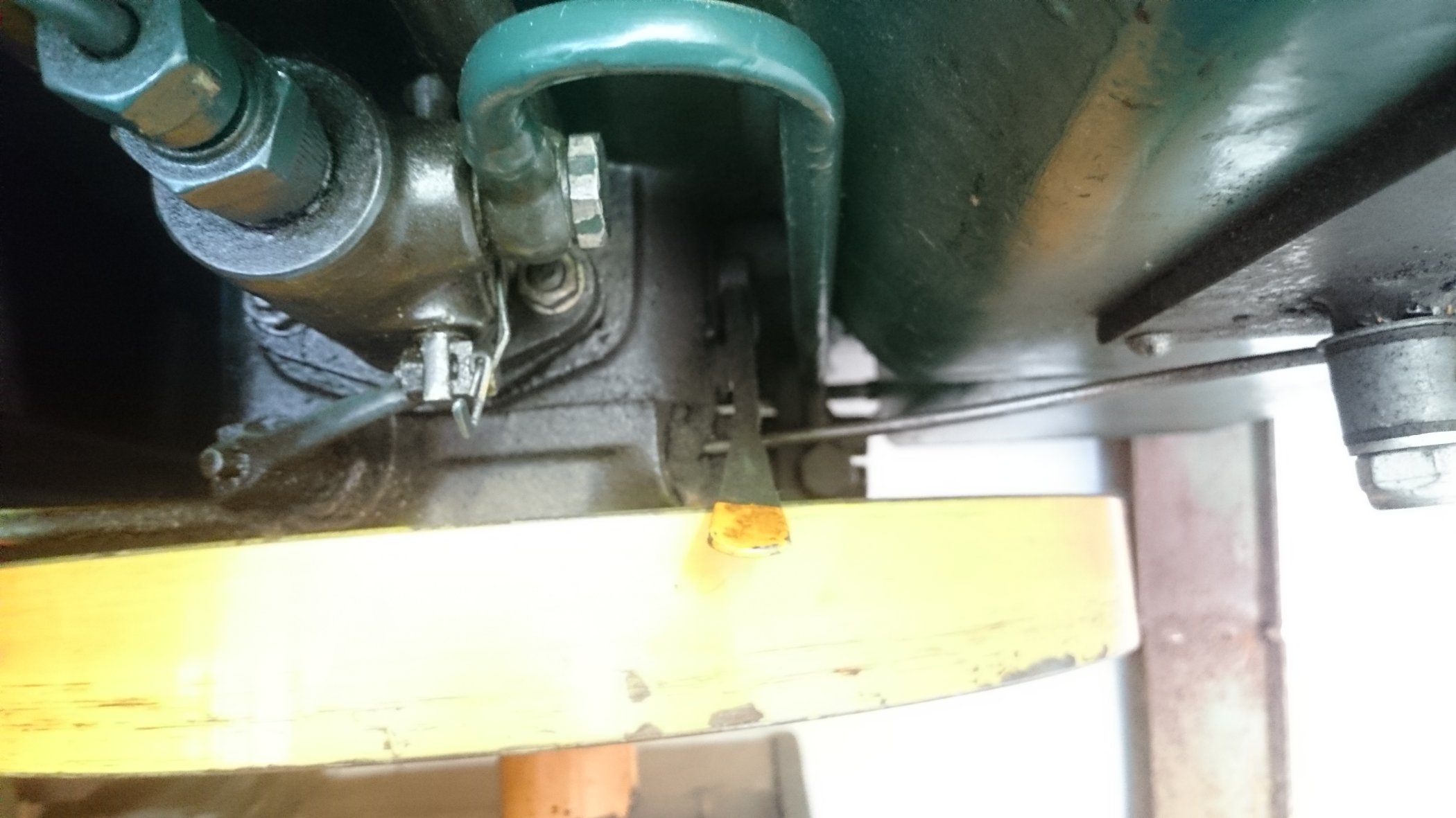 Hallo, an der Regelstange der Einspritzpumpe ist ein Klötzchen angeschraubt. Es hat eine kleine Nut die nach unten offen ist, worin der Reglerhebel mit seinem Knubbel eingreift. Der Drahtbügel ist nur zum Abstellen, um die Regelstange in Ausstellung zu arretieren. Wie genau das Gasgestänge an der Reglerfeder eingehängt ist, weiß ich nach 20 Jahren nicht mehr, aber es kann nur mit einer Öse oder Gewinde am Schweißdraht befestigt sein. Extra Anschlag am Gashebel brauch es aber nicht, geht so.