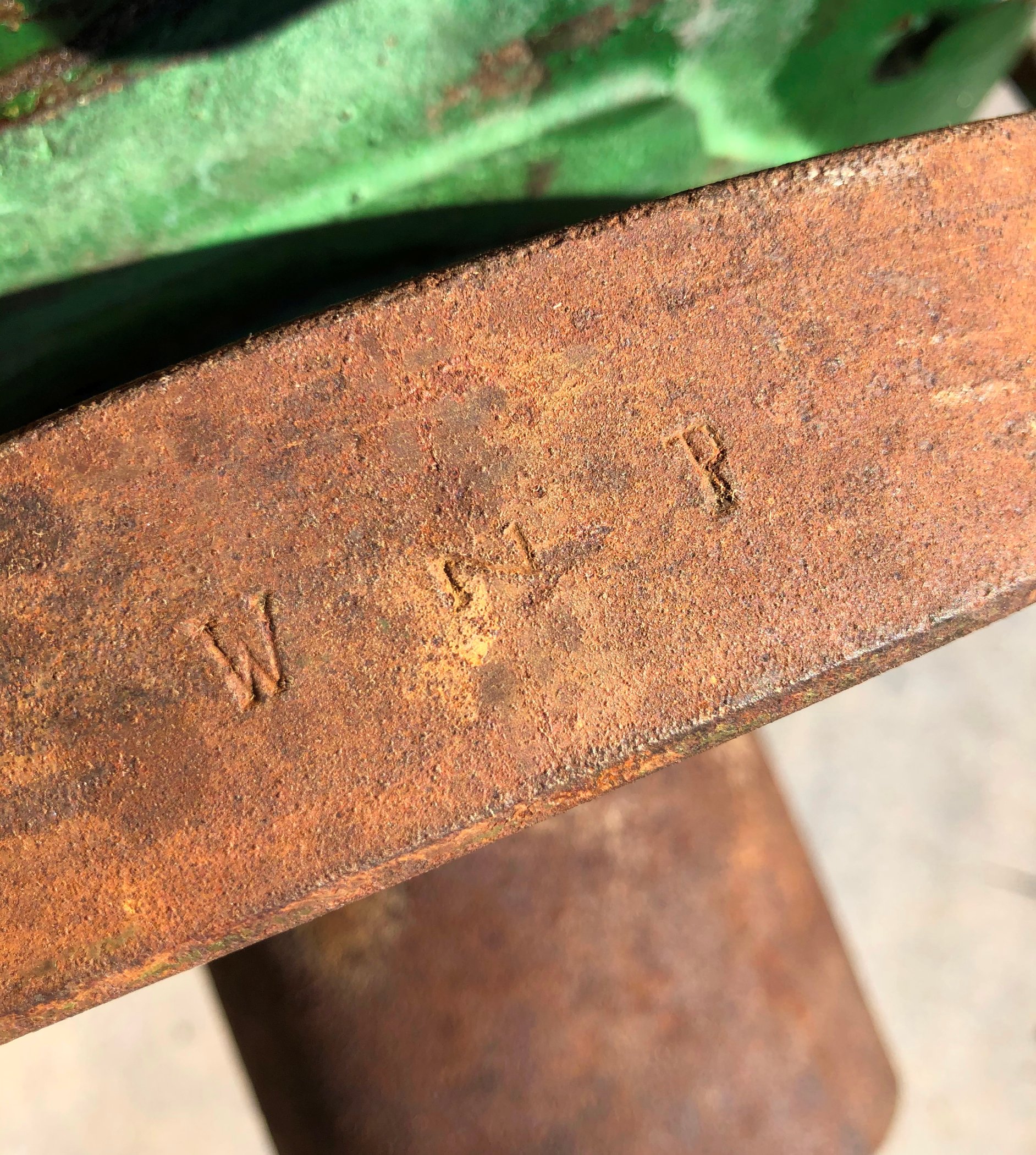 Auf dem Schwungrad sind drei Buchstaben eingeschlagen W N P, wobei das N wie ein umgekipptes Z ausschaut.