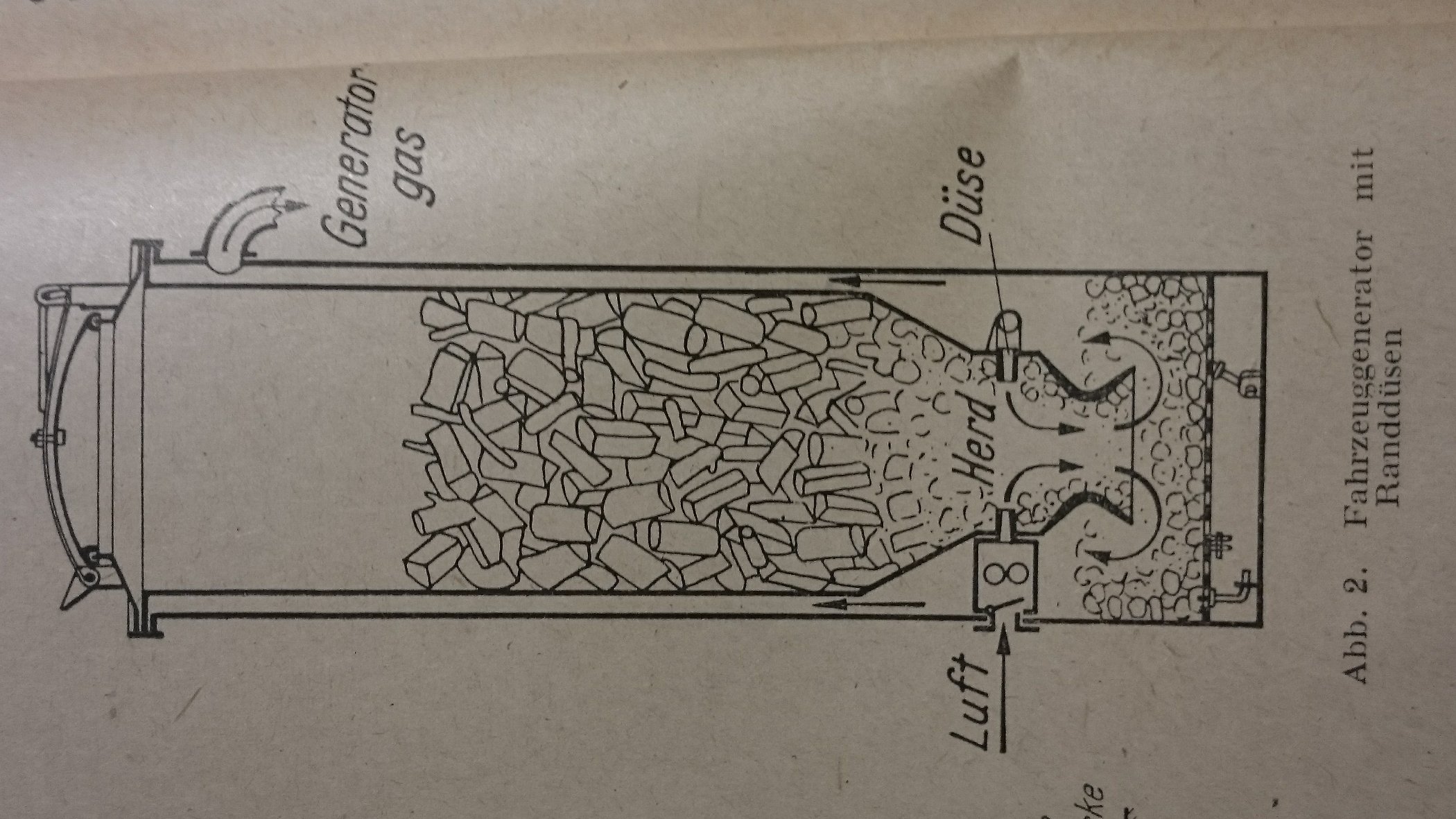 Du mußt nach wood gasifier suchen dann findest du mehr. Wenn du damit einen Motor betreiben willst wird da natürlich viel Aufmerksamkeit abverlangt d.h. ist nicht gerade wartungsarm. Der Generator sollte immer einen federbelasteten Deckel haben (siehe Imbert) der sich bei einer Verpuffung selbst öffnen kann sonst bumm!!