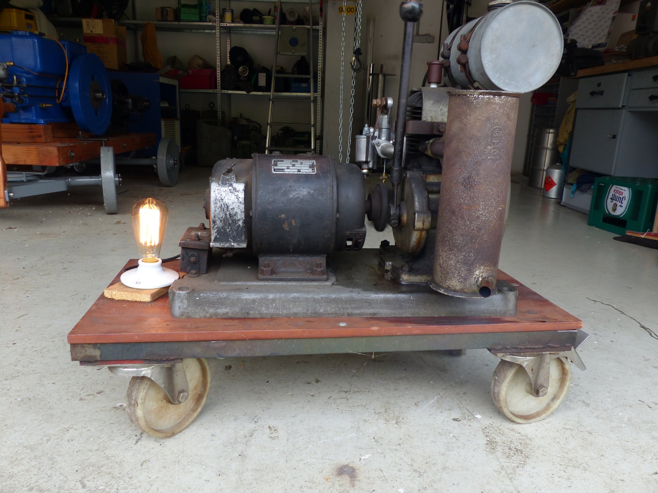 Da ich Zuhause langsam Platzprobleme bekomme muß ich mich von einigen Sachen trennen und verkaufe meinen Fichtel & Sachs STAMO 2 Gleichstromgenerator 220 V /1 kW. Habe ihn vor einigen Jahren mit fehlendem Vergaser gekauft. Der jetzt verbaute Vergaser entspricht bis auf die Schieber Feineinstellung Am Schiebergehäuse dem Original und läuft mit dem Generator tadellos,uriges Teil. Das Polrad ist neu magnetisiert. Da es ja dieses Jahr kaum Treffen gibt besteht auch die Möglichkeit das ich den Generator vorbei bringen kann wenn ich eventuell in der Gegend bin(Außendienst).