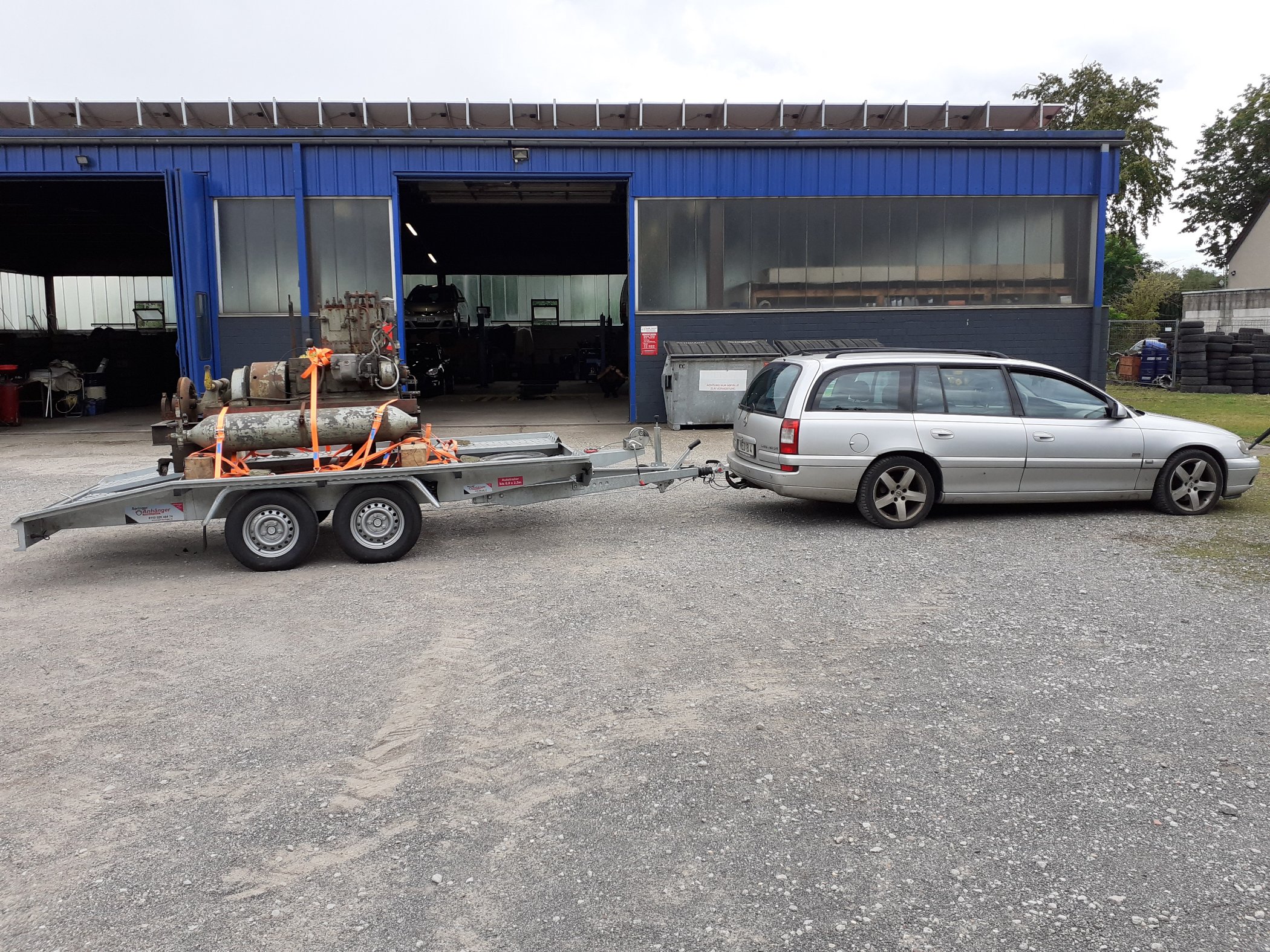 Der Motor hat mich EUR 350,00 gekostet, der Anhänger EUR 70,00 für zwei Tage und EUR 100,00 für den Diesel vom Zugfahrzeug, alles zusammen ca. 1.000 km an Fahrstrecke.