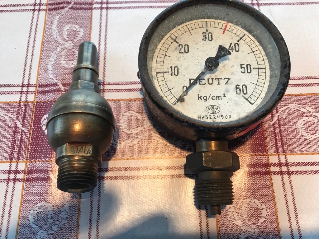 Verkaufe Deutz Maometer. Es lassen sich keinerlei Spuren eines Schlüssels am Sechskant erkennen. Wahrscheinlich handelt es sich um ein noch nie verbautes Neuteil. Weiterhin eine Dampfpfeife für den Wasserkasten, diese hat unten am Sechskant 0,1 Atm. eingeschlagen. Beides zusammen 280€ inkl. Versand in Deutschland.